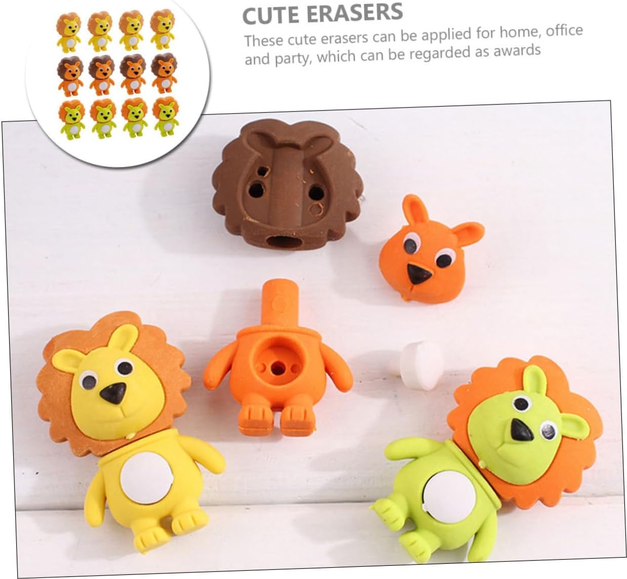Gomme da cancellare con in grandi quantità: con abbastanza gomme da cancellare, puoi regalarle ai tuoi amici e condividere il divertimento insieme, gomme da cancellare con animali dei cartoni animati Gomme da cancellare con leoni dei cartoni animati: il design creativo e interessante le rende fantastiche, graziose forme di , immagini di cartoni animati e simpatiche gomme da cancellare Smonta le gomme: questa gomma a forma di è facile da cancellare il della matita e può essere tranquillamente utilizzata come strumento di gioco e di disegno, gomme da cancellare artigianali Disegno del : l'adorabile design dall'aspetto di un cartone animato può attirare la tua attenzione e portare gioia ai tuoi amici, gomme per matite Gomme per premi: possono essere utilizzate su qualsiasi tipo di carta e possono essere utilizzate per aiutarti a eliminare gli errori di scrittura e i materiali di consumo
