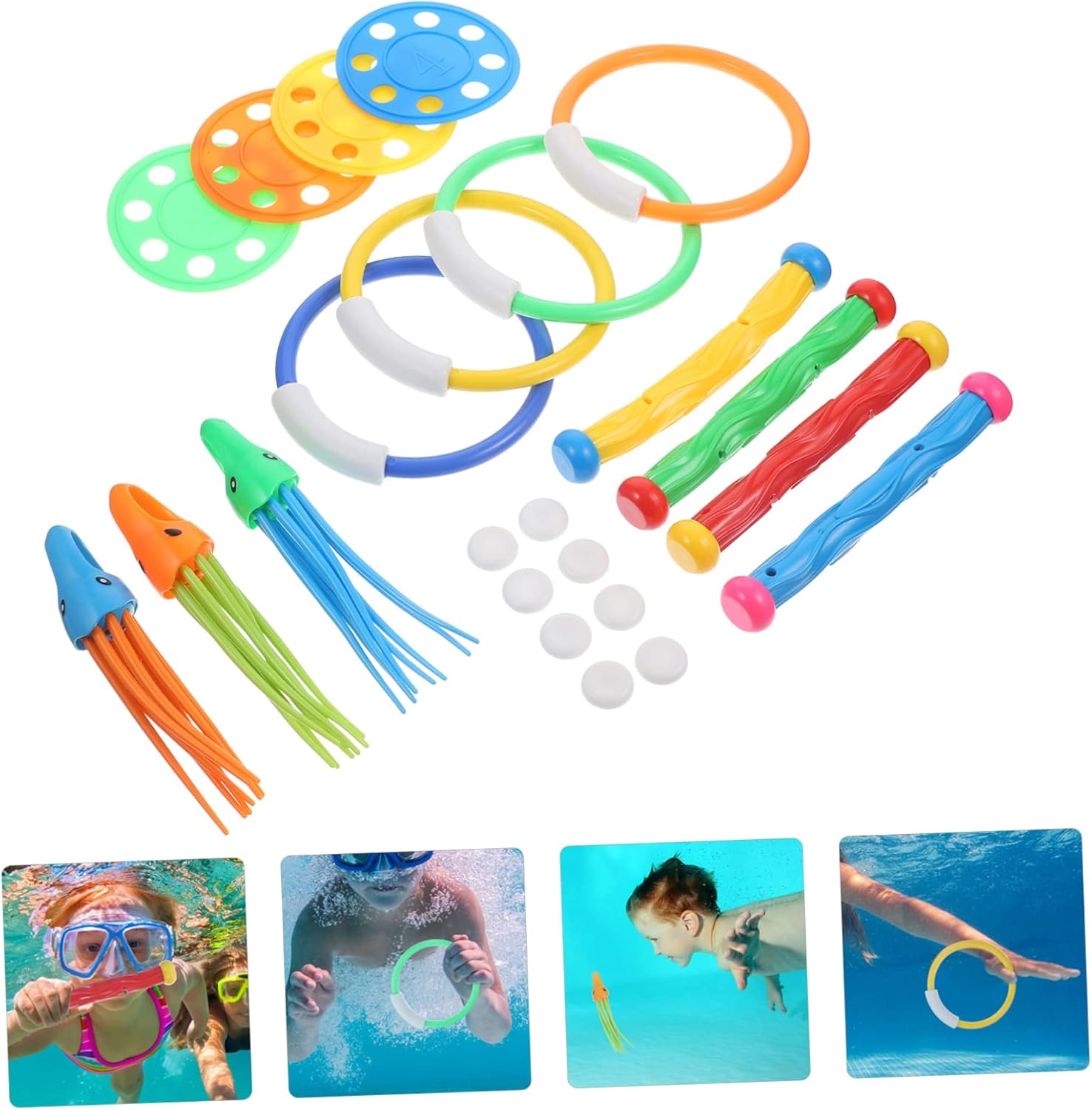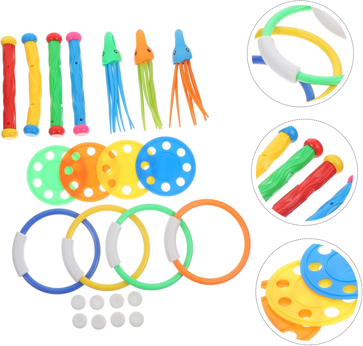 Anelli da immersione: con lavorazione pregiata, non facili da indossare e strappare, molto pratici da usare, immersioni in piscina Nuoto e immersioni: i colori vivaci possono aiutare a stimolare la vista, incoraggiandoli a toccare ed esplorare, immersioni in piscina per Immersioni per piscina: questo set per immersioni è facile e comodo da usare e facile da riporre quando non in uso, anelli per immersioni per piscina per Il design colorato è più attraente e porta più divertimento, così possono nuotare felicemente, bastoni da sub per piscina per Immersioni in piscina: realizzate in materiale plastico di alta qualità, senza sbavature, non danneggiano la pelle, immersioni