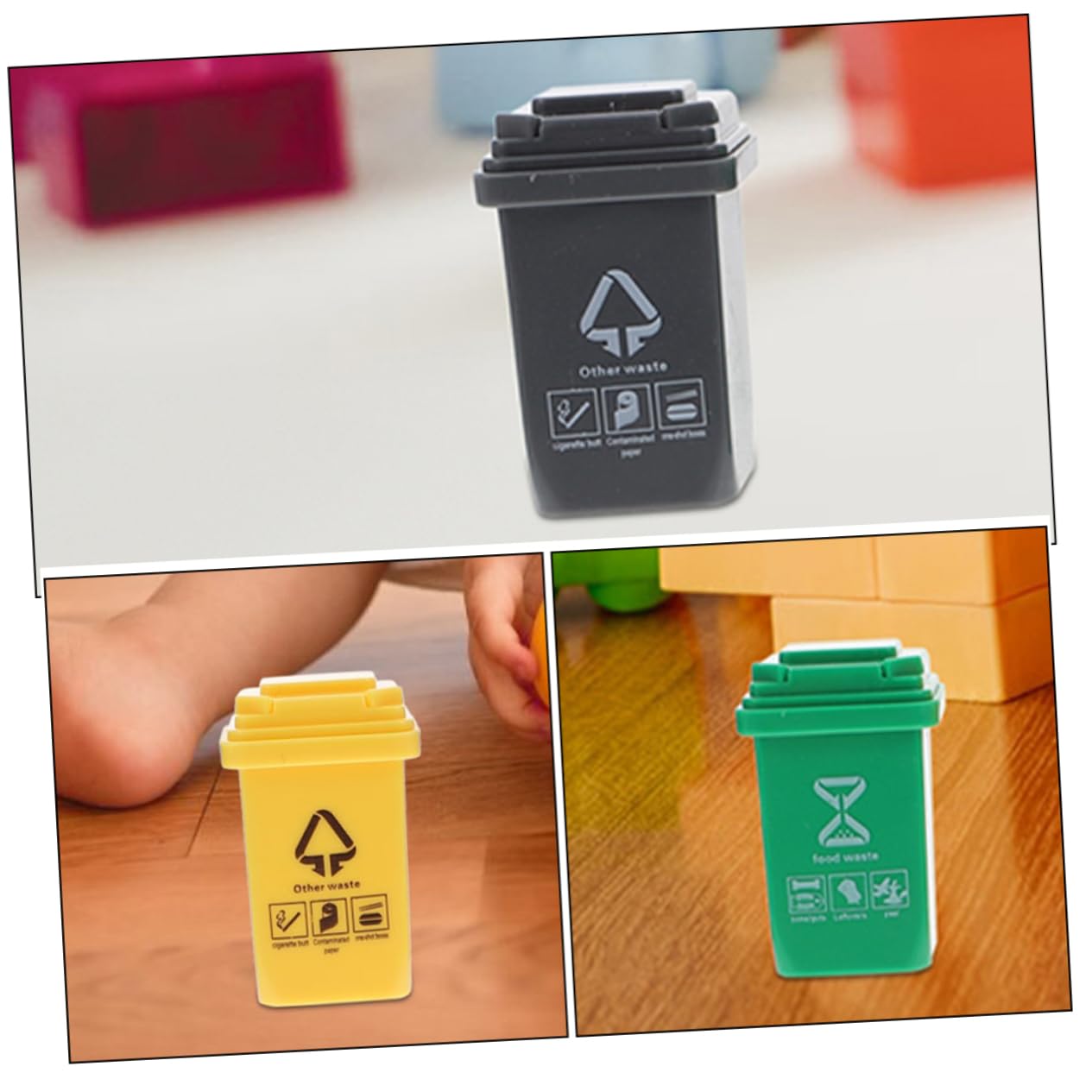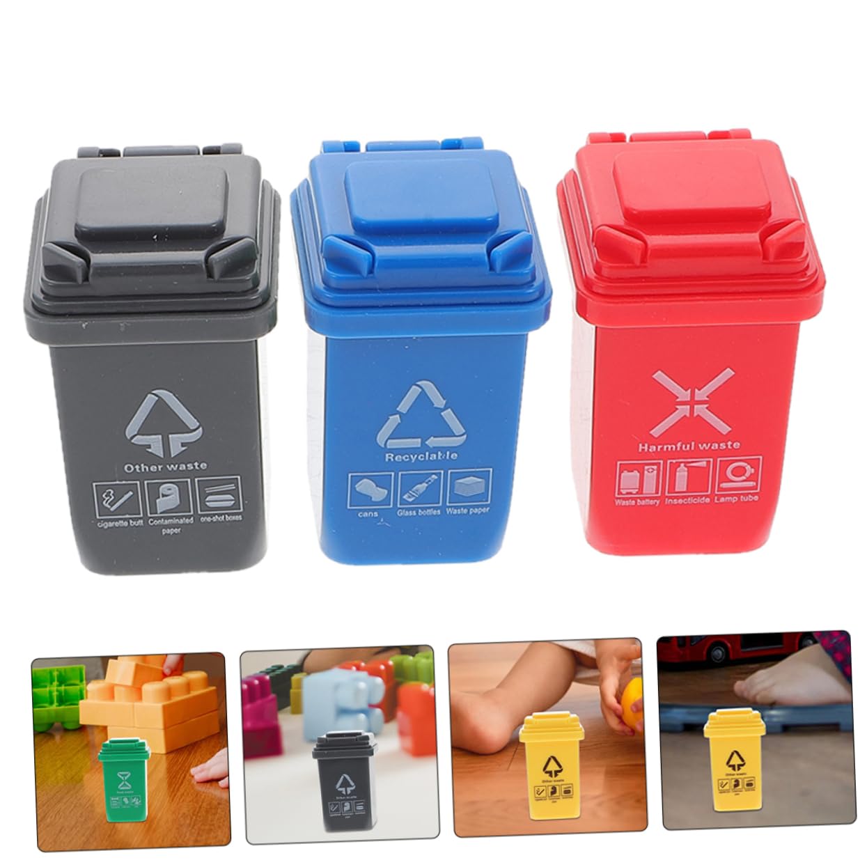 Di pattumiera: il mini pattumiera viene generalmente utilizzato per la decorazione della scena per aumentare l'effetto del livello della scena del tavolo di sabbia, mini pattumiera Decorazione del tavolo di sabbia: mini contenitore per la classificazione dei rifiuti il design del bidone della spazzatura in miniatura, creativo e decorativo, forma realistica, bello per il tavolo di sabbia fai da te, gioco di smistamento dei rifiuti Di bidone della spazzatura di piccola casa: ottimo per aggiungere un'atmosfera di vita alla tua mini casa, chic e adorabile, può anche essere servito come ornamento da scrivania con questo ornamento divertente e delicato, bidone della spazzatura della casa delle bambole Mini bidone della spazzatura: con dettagli delicati e design unico, rende il mini bidone della spazzatura molto vivido e creativo, di cestino per rifiuti stradali Di bidone della spazzatura in miniatura: anche se molto piccoli, sono abbastanza squisiti e hanno un eccellente effetto decorativo, bidone della spazzatura della casa delle bambole