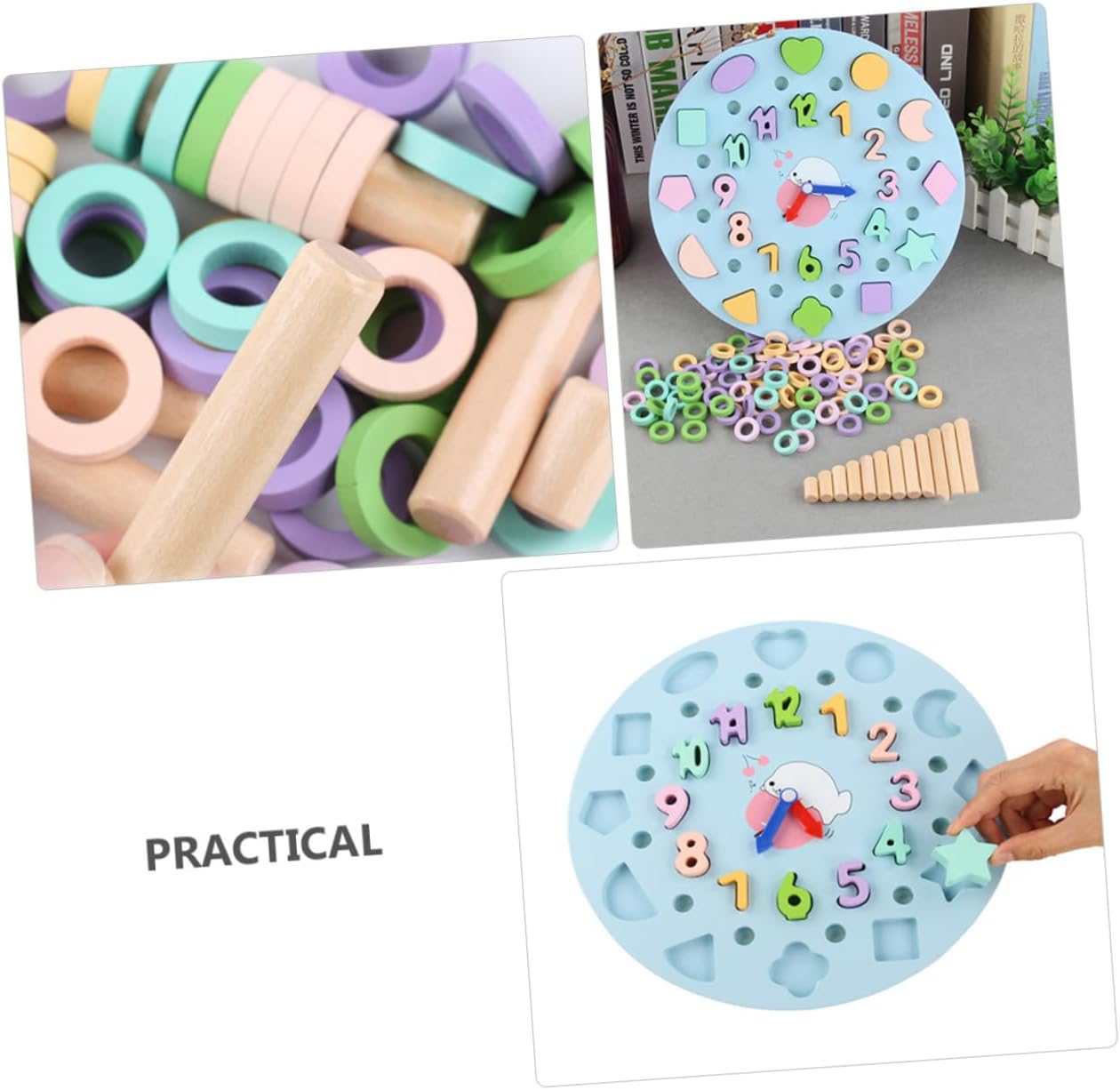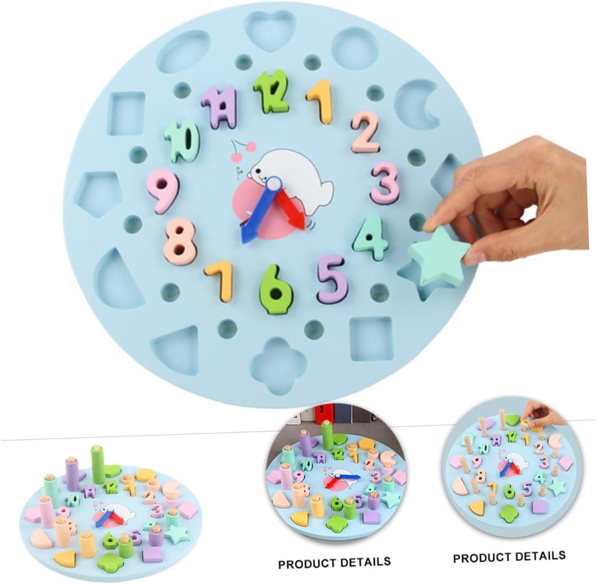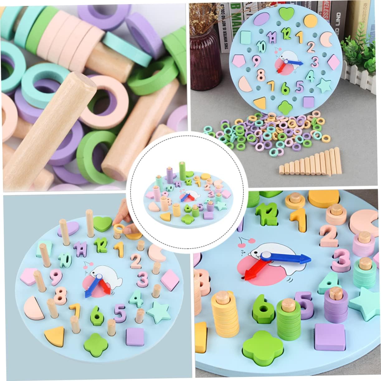 Puzzle per bambini: realizzato in robusto materiale di legno, sicuro e adatto a far giocare i bambini. Giocattolo per l'allenamento della memoria: superficie liscia, buona tecnologia di realizzazione, facile da danneggiare la pelle delicata dei bambini, molto sicuro. Giocattolo educativo precoce: multiuso, può aiutare a coltivare i molti tipi di abilità di tuo figlio, adorabili e divertenti. Tabellone orologio creativo: una selezione per il tuo , un giocattolo educativo divertente e creativo. Giocattolo in legno per bambini: illuminazione e cognizione dei bambini, in modo che i bambini possano comprendere numeri e forme diverse.