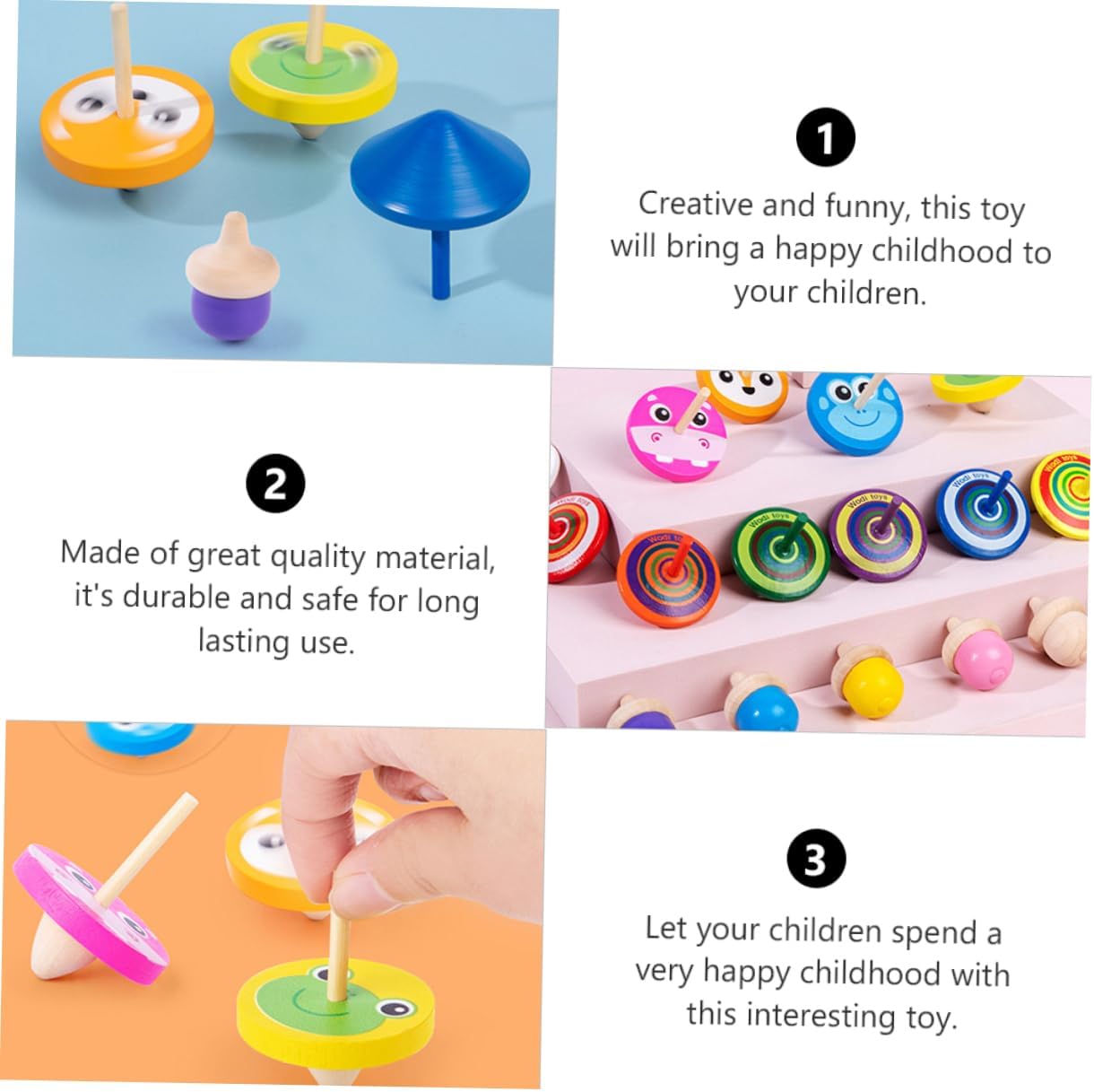 Giocattoli giroscopici per bambini: questo è un ottimo giocattolo per esercitare efficacemente la coordinazione occhio-mano del tuo bambino. Top per bambini: creativo e divertente, questo giocattolo porterà un'infanzia felice ai tuoi bambini. Giocattolo rotante: bordi e superficie lisci, non devi preoccuparti di ferire le dei tuoi bambini. Giocattoli rotanti: questi giocattoli giroscopici eserciteranno efficacemente la delle braccia dei bambini. Top per bambini piccoli: potresti inviarlo ai tuoi ragazzi e ragazze come regalo e a loro piacerà.