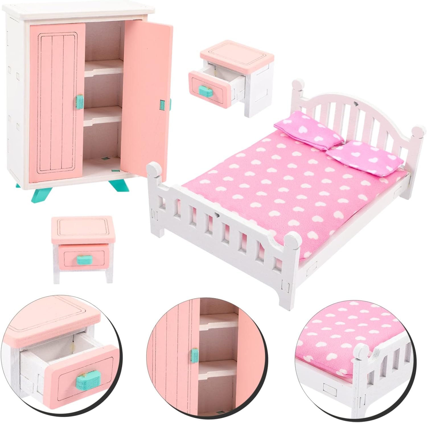 Letto in miniatura: puoi mettere questo sulla scrivania per decorare, adatto per soggiorno, camera da letto, cameretta dei bambini, ecc., arredamento per letto in miniatura Ornamento da letto in miniatura: la sua superficie liscia assicura una sensazione di comfort al tatto, ornamento da armadio in miniatura Armadio in miniatura: puoi utilizzarlo per la camera dei tuoi bambini, la casa in miniatura, i giochi di finzione, le foto e altro ancora, il di letto in miniatura di comodino in miniatura: questa decorazione per mobili in miniatura ha una forma unica e un chic, che sembra molto e realistica, decorazione in miniatura Kit di mobili in miniatura: realizzato in materiale ad alta resistenza e resistente all'usura, per l'uso, non facile da cambiare o rompere, ornamento in miniatura