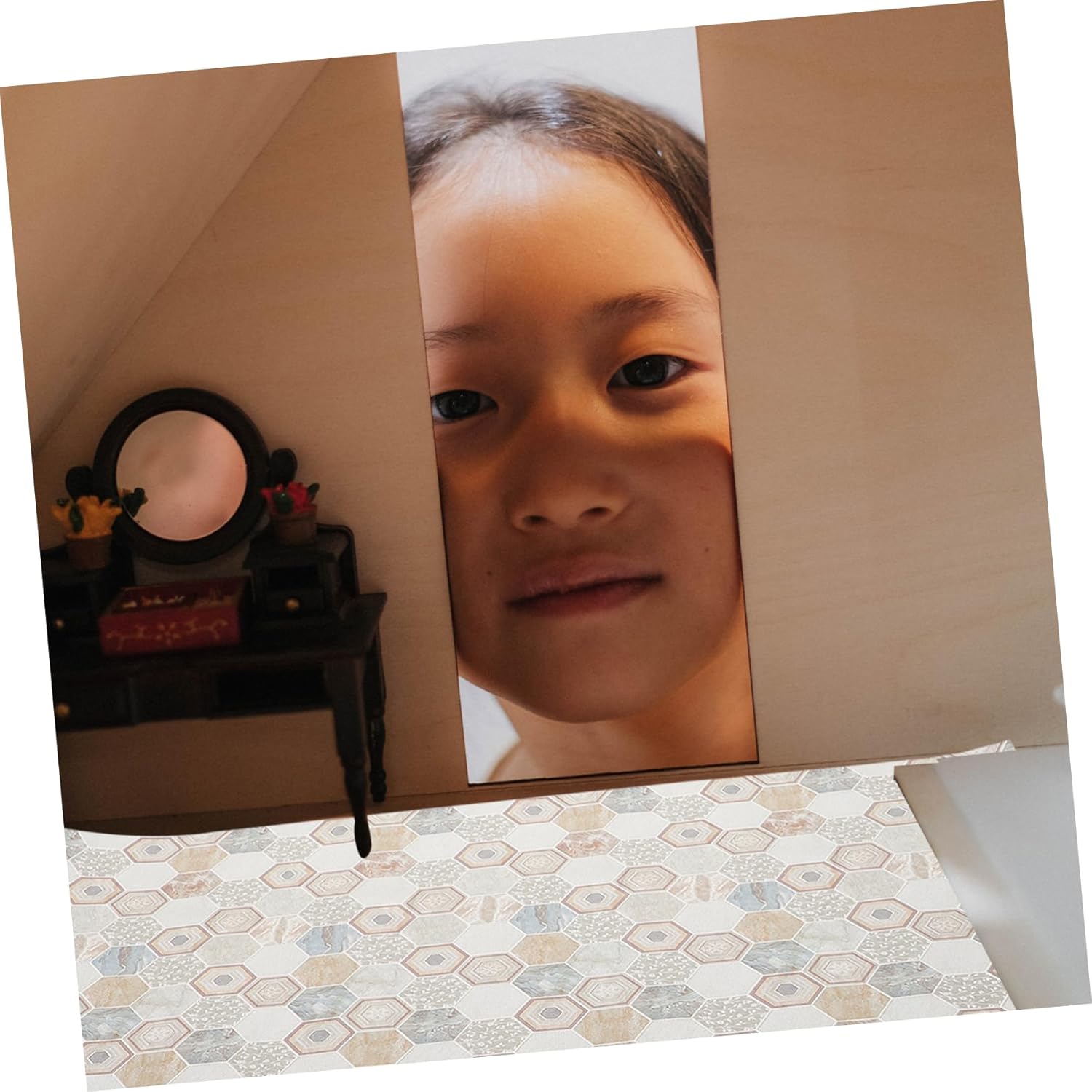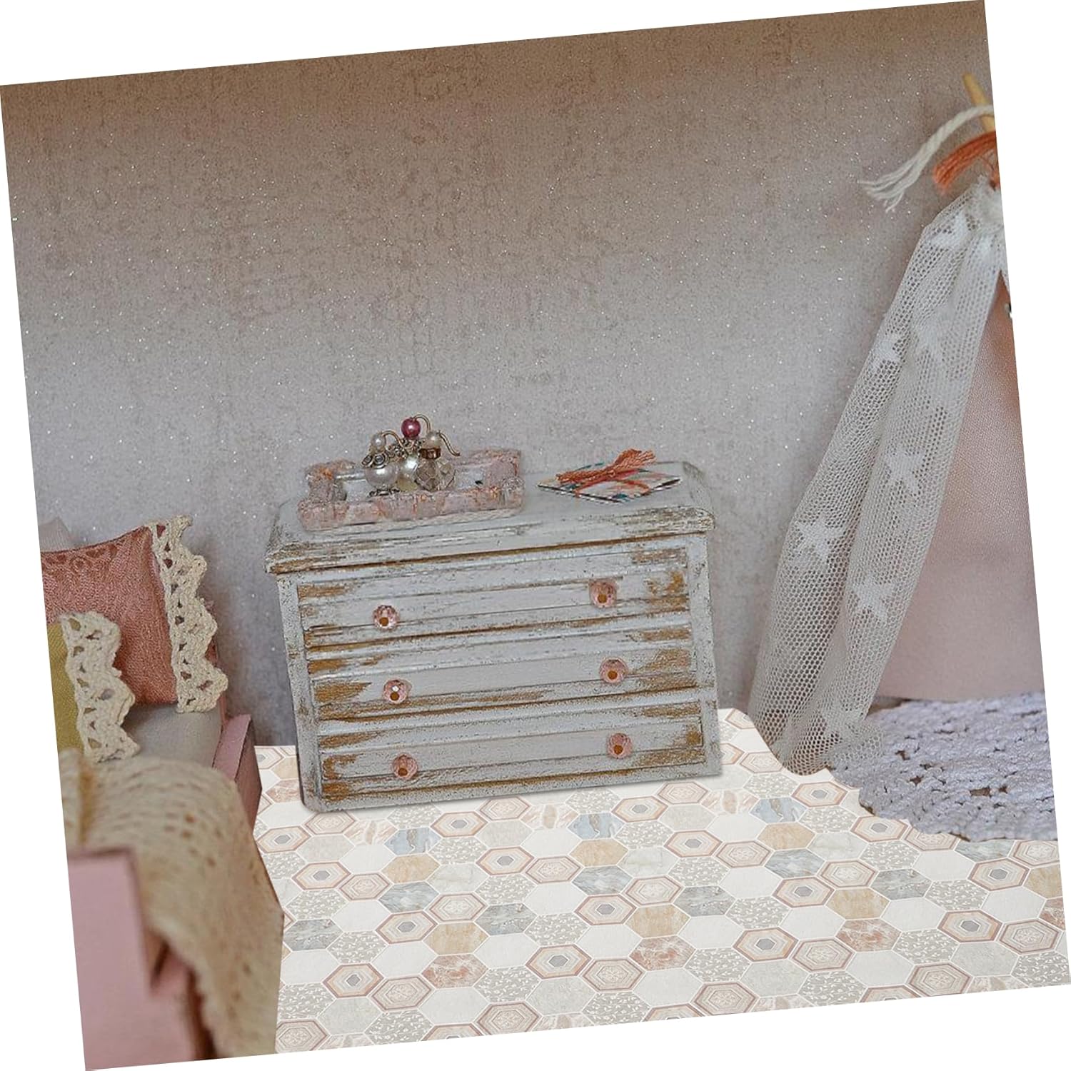 Decorazione del pavimento in miniatura: caratteristica e raffinata con un design rustico, semplice e nel design, linee morbide, mini accessori per la casa. Pavimentazione minuscola: sicura e affidabile da usare, non facile da rompere o deformare, riutilizzabile e può essere applicata per lungo tempo, mini pavimentazione. Mini pavimento per piccola casa: realizzato in pelle sintetica che presenta stabilità e durata, molto duro e liscio per l'uso, accessori in miniatura. Accessorio per casa delle bambole: il design ingegnoso di questo mini pavimento aiuta a rendere più decorativo il layout della tua mini casa, il pavimento in miniatura della casa delle bambole. Mini pavimento per l'artigianato: piastrelle per pavimenti in stile retrò, possono essere utilizzate come oggetti di scena per le foto e la decorazione del mini pavimento ha un'ampia applicazione, decorazione della mini tavola.