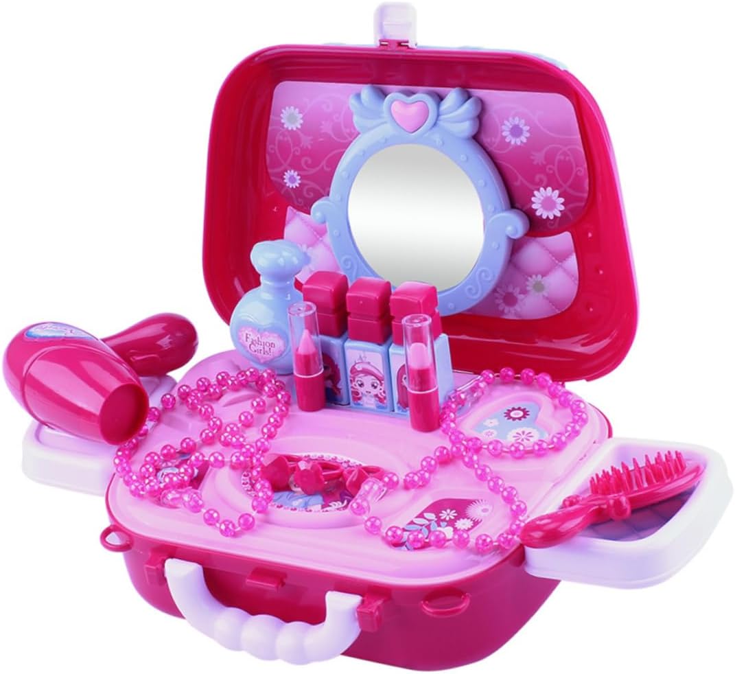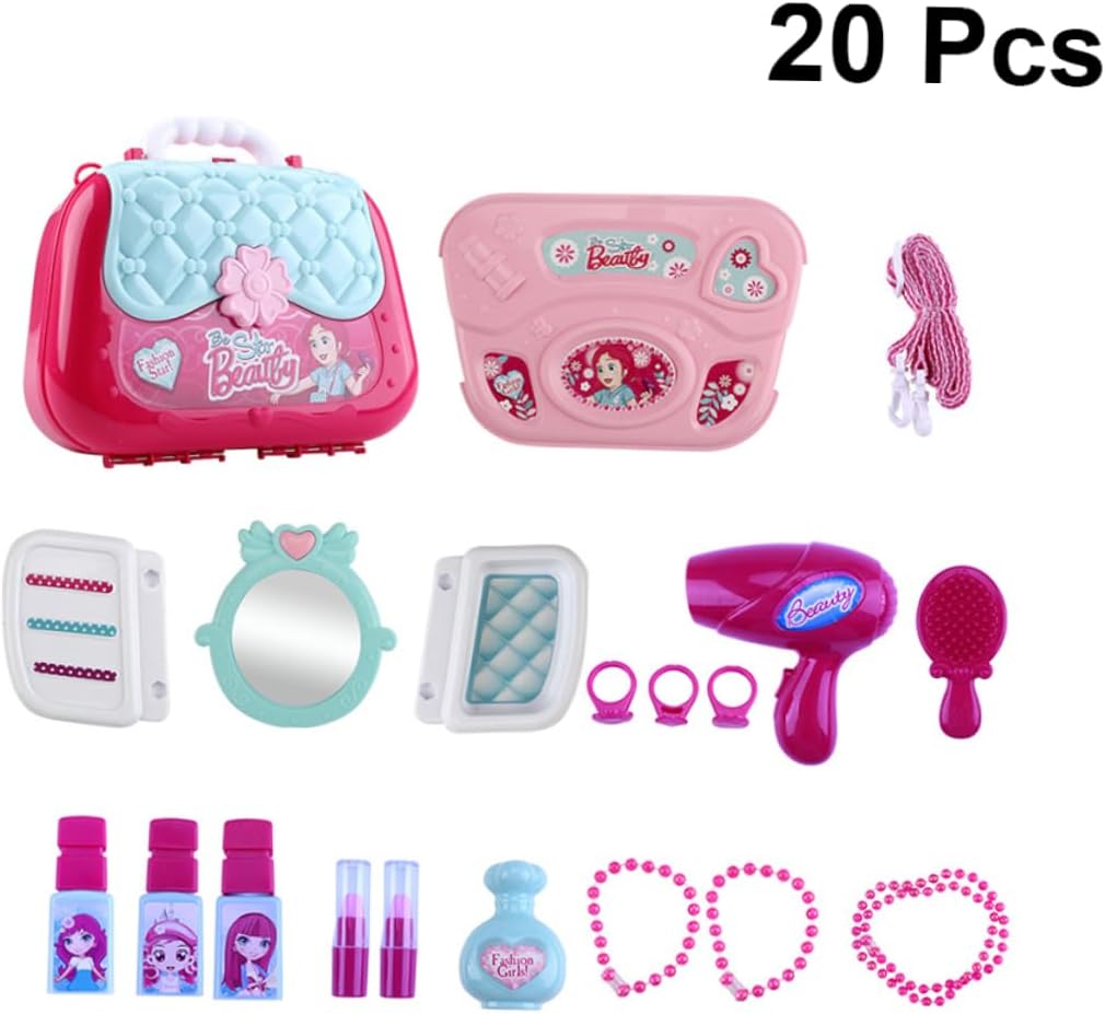 Set da gioco per bambini: realizzato in materiale, sicuro, non dannoso per la salute. Kit trucco per ragazze play: adatto per un regalo alle vostre bambine. Giocattoli da principessa per i più piccoli: il giocattolo cosmetico può aiutare a sviluppare l'abilità manipolativa dei tuoi bambini. Borsa cosmetica per ragazza: anche un giocattolo interattivo genitore-figlio. Kit di cosmetologia: perfetto per giocattoli finti, trucco per feste, cosplay, ecc.