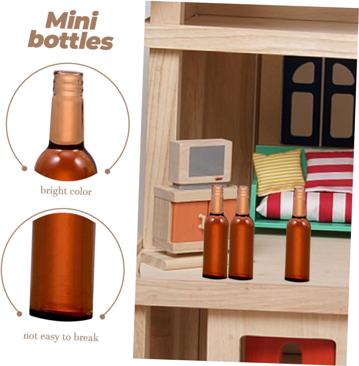 Bottiglia di birra per casa delle bambole: le decorazioni delle bottiglie in miniatura possono essere utilizzate con altri mini ornamenti per la casa per avere un migliore effetto decorativo. Miniature di case delle bambole: superficie liscia, questi modelli di mini bottiglie di birra sono leggeri, facili da trasportare, comodi da riporre per un utilizzo ripetuto. Mini bottiglie di birra per casa delle bambole: dimensioni compatte, facili da usare, coltiva l'abilità pratica dei tuoi bambini decorando da soli la loro piccola casa. Bottiglia di vino in miniatura: buona fattura, queste mini bottiglie di birra sono molto delicate e realistiche, con buoni effetti decorativi. Mini bottiglie di vino: realizzate con materiali in resina, queste mini bottiglie di birra hanno un alto grado di simulazione, ottime per la decorazione della casa delle bambole.