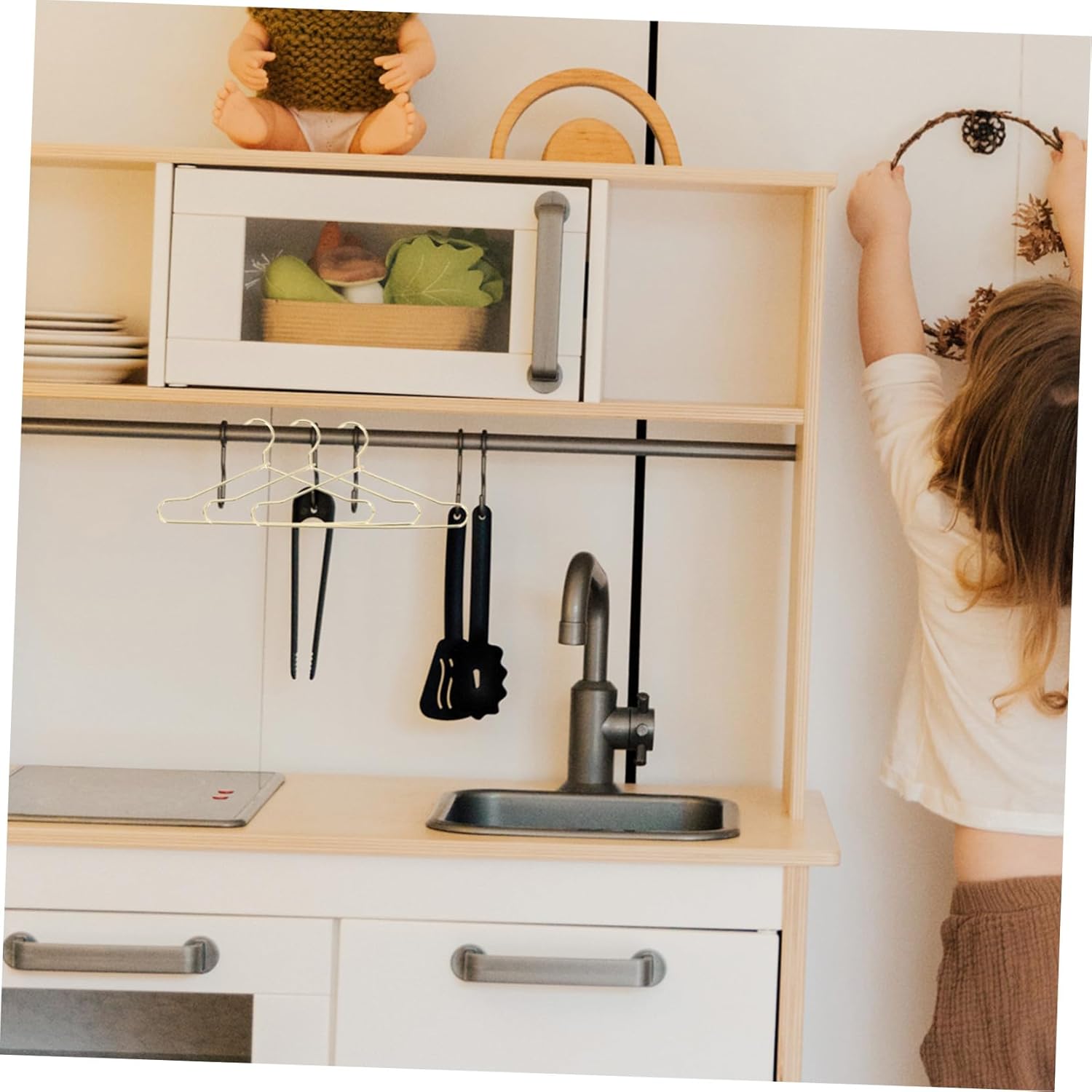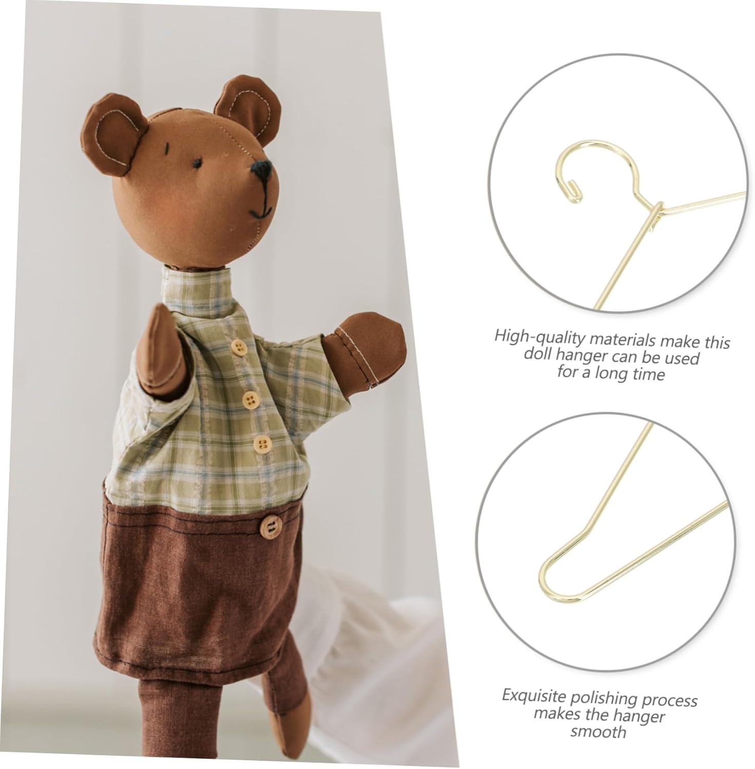 Gruccia in metallo per abiti: con lavorazione pregiata, le grucce non sono facili da indossare e strappare, molto pratiche, grucce in miniatura Mini grucce per vestiti: il materiale robusto rende queste grucce per vestiti per bambole utilizzabili a lungo, appendiabiti in metallo in miniatura Mini gruccia: puoi organizzare il tuo armadio per bambole in modo più semplice e comodo con queste grucce, mini gruccia per vestiti Appendiabiti in miniatura: dal design semplice, ma molto pratico nell'uso, offre grande praticità, porta abiti creativi e artigianali Appendiabiti per casa delle bambole: questi appendini sono accessori necessari per la tua mini casa e la rendono ordinata, mini appendini
