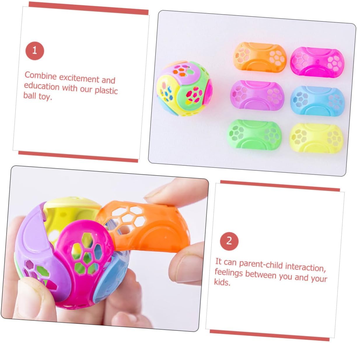 Giocattoli con palline intelligenti: migliorano la trasformazione della capacità di pensiero e delle e del cervello del , combinando capacità, giocattoli con palline portatili Giocattoli educativi per : adozione di, robusti e per un uso a lungo termine, funny ball toys Giocattoli di plastica: i colori intensi dei giocattoli esercitano la cognizione del dei e coltivano la percezione del e la capacità estetica, giocattoli intellettuali creativi Giocattoli con palline assemblate: per l'educazione prescolare dei , per migliorare la coordinazione occhio-mano, sviluppare la potenza del cervello, espandere la sensibilità ai colori, giocattolo divertente per Giocattolo per : per far esercitare ai le loro competenze cognitive, capacità manipolative e capacità di apprendimento, giocattolo a palla