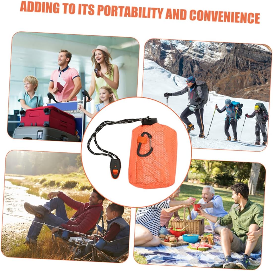 Caratteristiche essenziali di emergenza: dotato di un fischietto di emergenza, questo sacco offre un mezzo per chiedere aiuto in situazioni critiche, escursionismo, sacco a pelo per adulti Ottima pellicola in alluminio pe: realizzata in ottima pellicola in alluminio pe, questa borsa offre un'eccellente durata e protezione contro acqua e umidità, sacco bivacco, leggero Ottima pellicola in alluminio pe: la struttura della pellicola in alluminio pe offre un'eccellente protezione impermeabile e anti-umidità, garantendo che i tuoi sacchi a pelo da campeggio rimangano asciutti, sacchi a pelo da campeggio, sacco bivacco Comodo design con coulisse: la chiusura con coulisse lo rende facile da imballare e trasportare, offrendo un facile stoccaggio all'aperto, organizer per borse, inverno Piccola borsa rotonda con maniglia: la piccola borsa rotonda inclusa con maniglia consente un comodo fissaggio allo zaino o un facile trasporto a mano, borsa di sopravvivenza di emergenza portatile