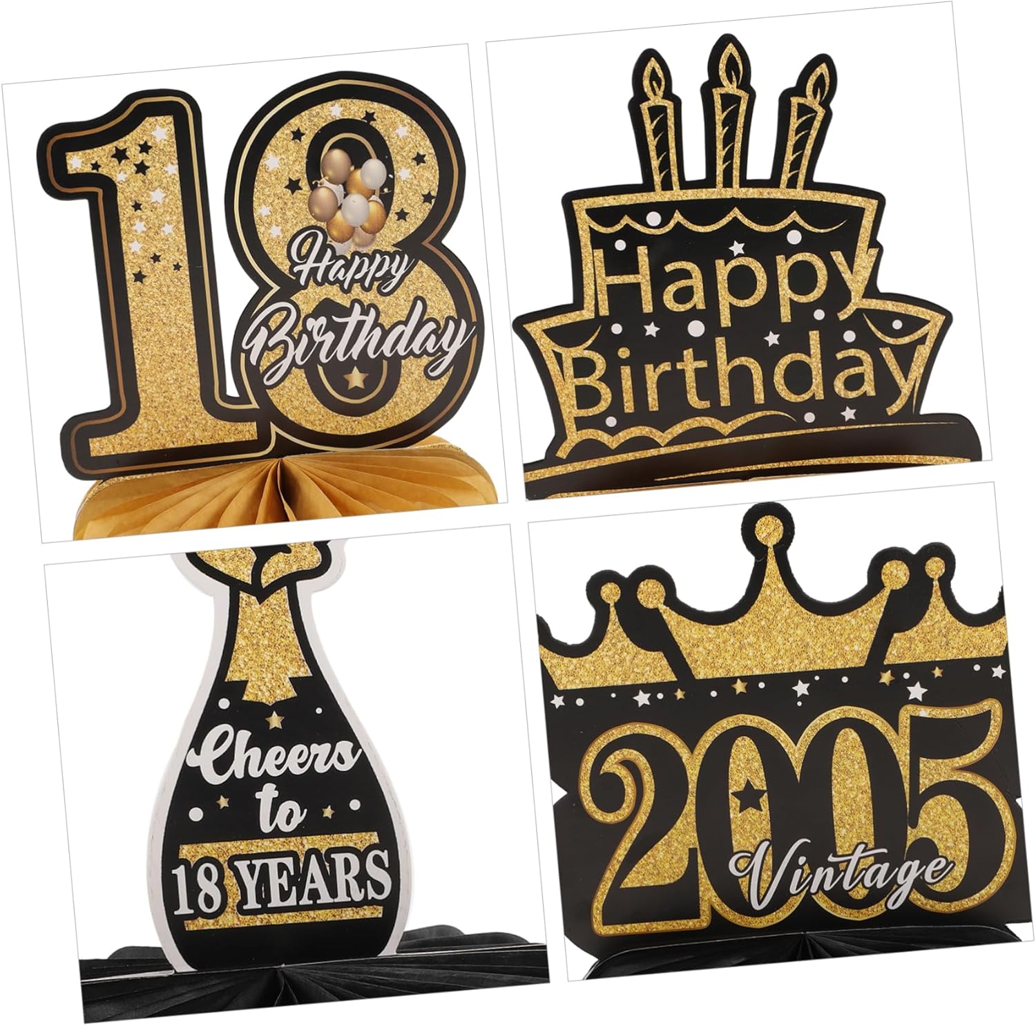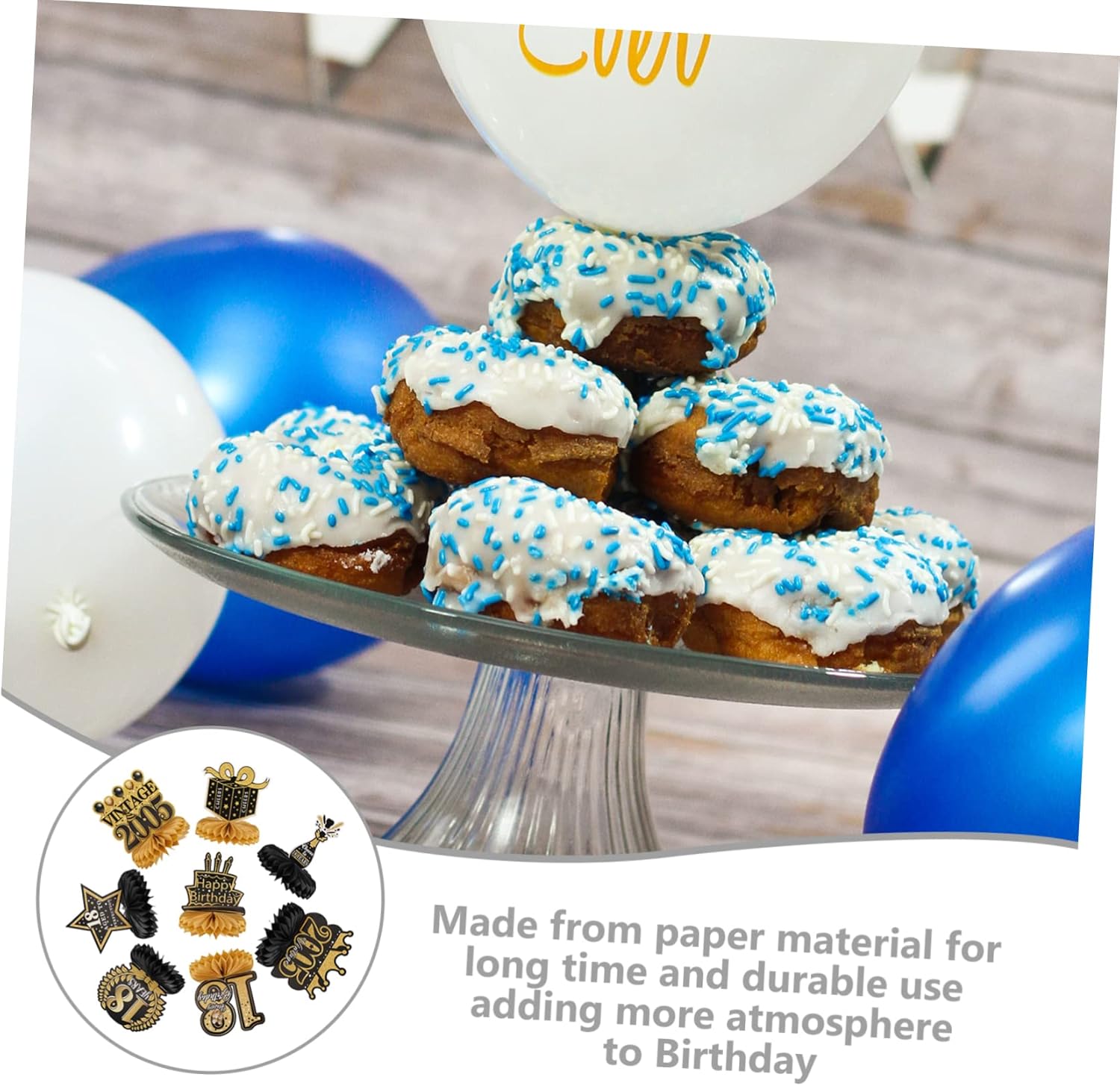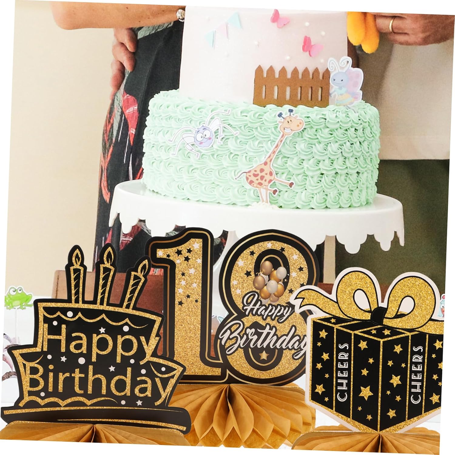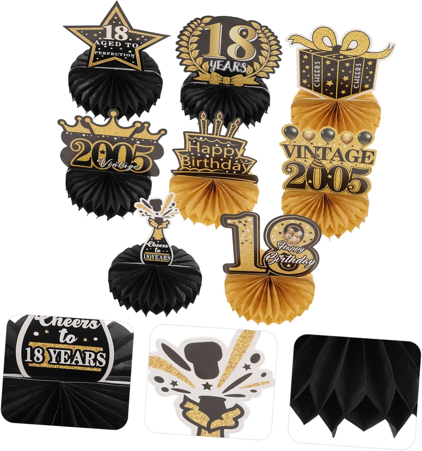 Kit di decorazioni per il compleanno: il design classico del modello di compleanno lo rende più unico e attraente, il design creativo delle palline a nido d'ape. Decorazioni tavolo per compleanno: 8 decorazioni di buon compleanno per 18 anni, palline a nido d'ape nere e dorate per centrotavola, toppers per feste di compleanno. Decorazioni per il desktop di compleanno: le decorazioni a nido d'ape di buon compleanno sono squisiti oggetti di scena per foto, decorazioni chic, squisite e creative, decorazioni natalizie. Decorazioni di compleanno: viene fornito con un aspetto a nido d'ape e leggero, facile posizionare sulla scrivania. Forniture per feste di compleanno: decorazioni per feste di compleanno in oro nero, bellissimi oggetti di scena per foto, decorativi e chic, delicati e creativi, buone decorazioni per i festival.