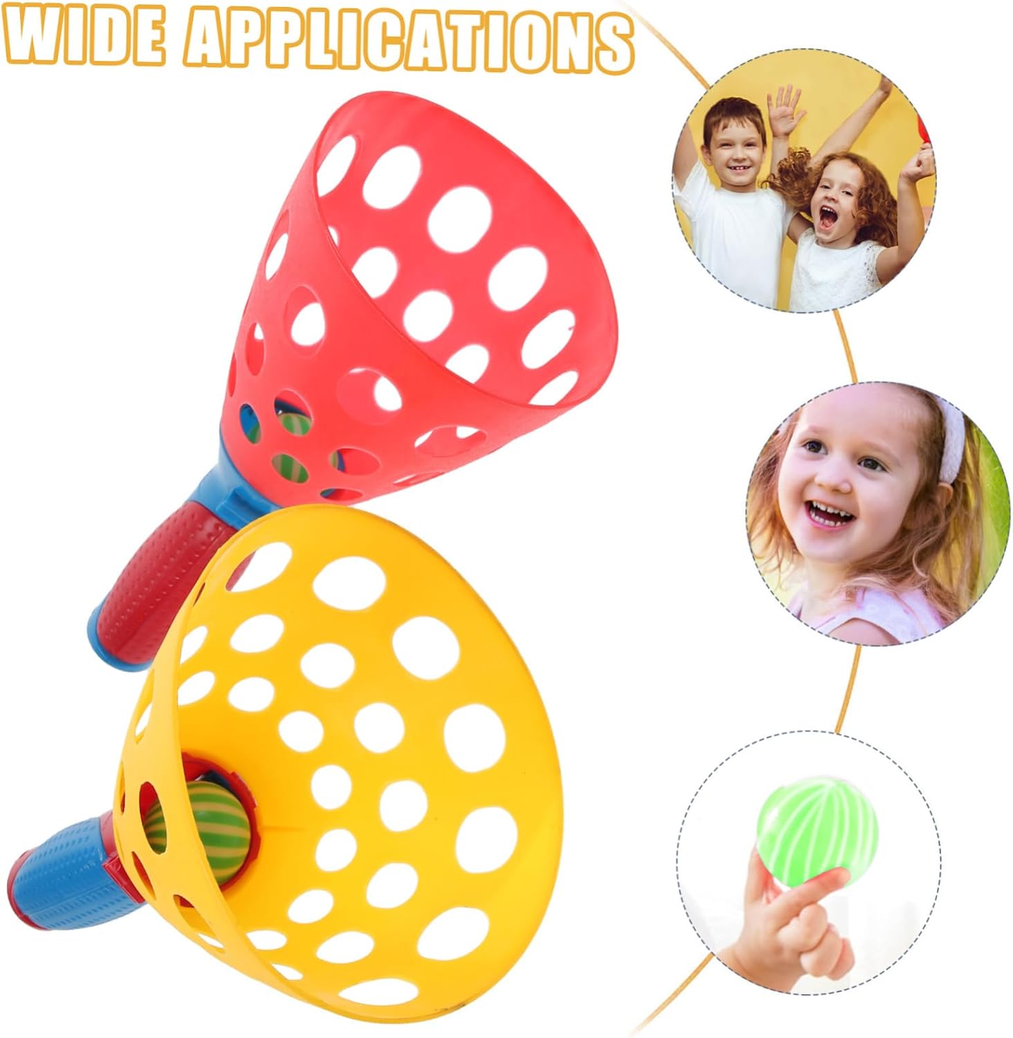 Gioco di lancio: ottimo per la coordinazione occhio-mano, oltre a essere un modo divertente per mantenere e adulti attivi e vigili. e prendi le palline E cattura palle: il gioco può essere giocato da due persone, lanciando la palla e catturandola Lanciatore: è adatto a tutti i livelli di abilità ed è un gioco divertente per tutta la famiglia. e cattura palline E lanciatore di palline: ottimo per giocare in giardino, al parco, in spiaggia o in piscina. e cattura palline Un singolo giocatore può anche giocare , lanciando la palla direttamente in alto e poi catturandola