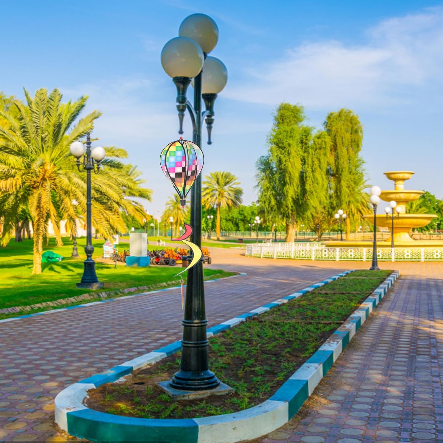 Ciondolo a forma di mongolfiera: può essere appeso ad alberi, finestre, soffitti, patii o ovunque tu voglia, mulino a colorato Girandole eoliche: ampia applicazione, adatte per giardino, cortile, patio, negozio, vivai e altro ancora, pendente da giardino Mongolfiere: adatte per decorare una varietà di occasioni, cortili, , feste, allestimenti di negozi, ecc., ornamento a forma di mongolfiera Decorazione per feste: realizzata in materiale di alta qualità con ottima fattura e dettagli squisiti, dall'aspetto bellissimo, palloncini ad aria Girandole in stoffa: pendenti con design a spirale accattivanti, aggiungono più fascino tuo giardino e alle decorazioni del cortile