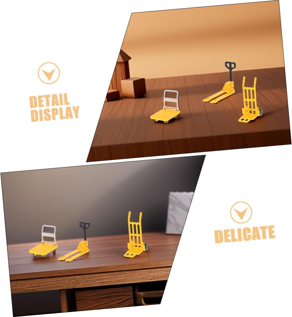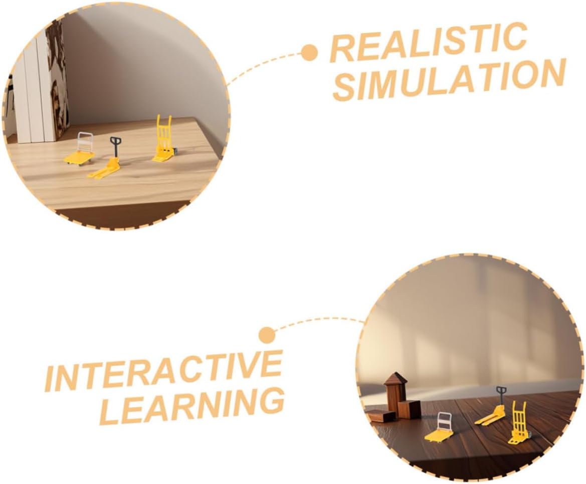 Realismo in miniatura: i modelli di mini strumenti da costruzione sono realizzati per dare un tocco realistico a qualsiasi scena in miniatura, mini segnaletica per auto, carrello elevatore in plastica dei cartoni animati Diversi pezzi: carrello elevatore in miniatura, carrucola manuale e carrelli a piattaforma, che consentono diverse combinazioni e configurazioni, di strada stradale in miniatura, miniature di utensili in movimento Dettagliato: ogni pezzo presenta dettagli intricati, che mettono in mostra la bellezza dell'artigianato in miniatura e aggiungono realismo a qualsiasi scena, mini strumenti di costruzione in movimento, mini giocattolo di carrello elevatore Decorativo: queste miniature possono essere utilizzate come oggetti decorativi o come di un progetto fai da te, ornamento del carrello elevatore, giocattolo di utensili in movimento in miniatura Oggetto di scena: questo piccolo è un oggetto di studio per i che vogliono apprendere le conoscenze sul dispositivo in movimento, piccolo giocattolo, di carrello elevatore da costruzione