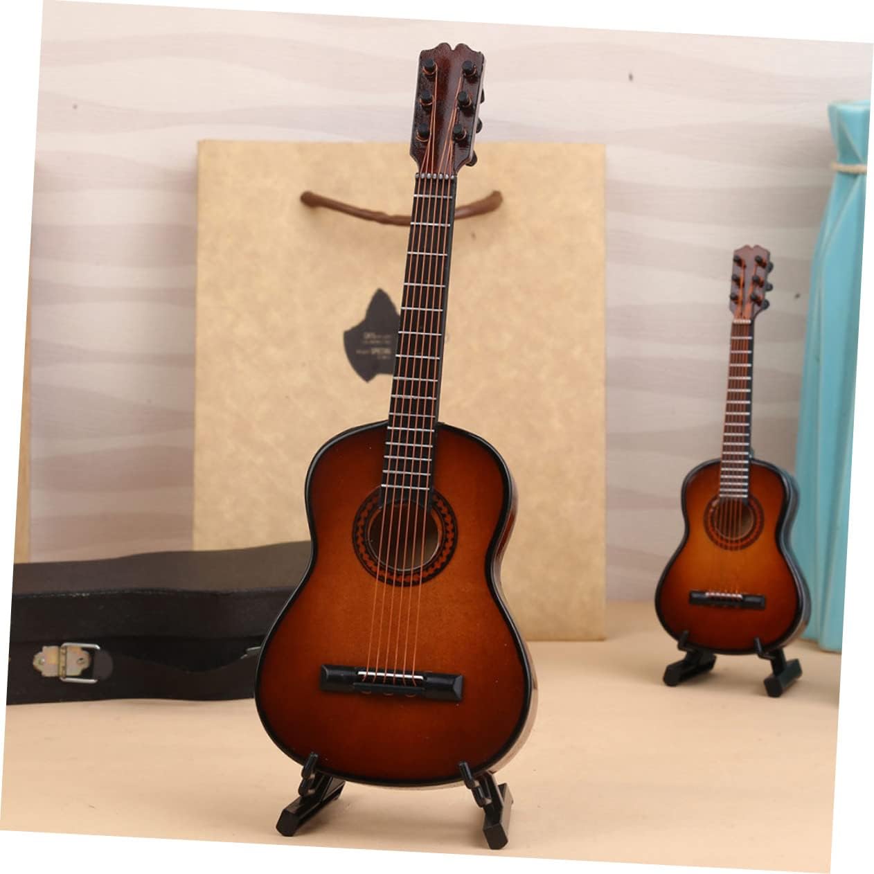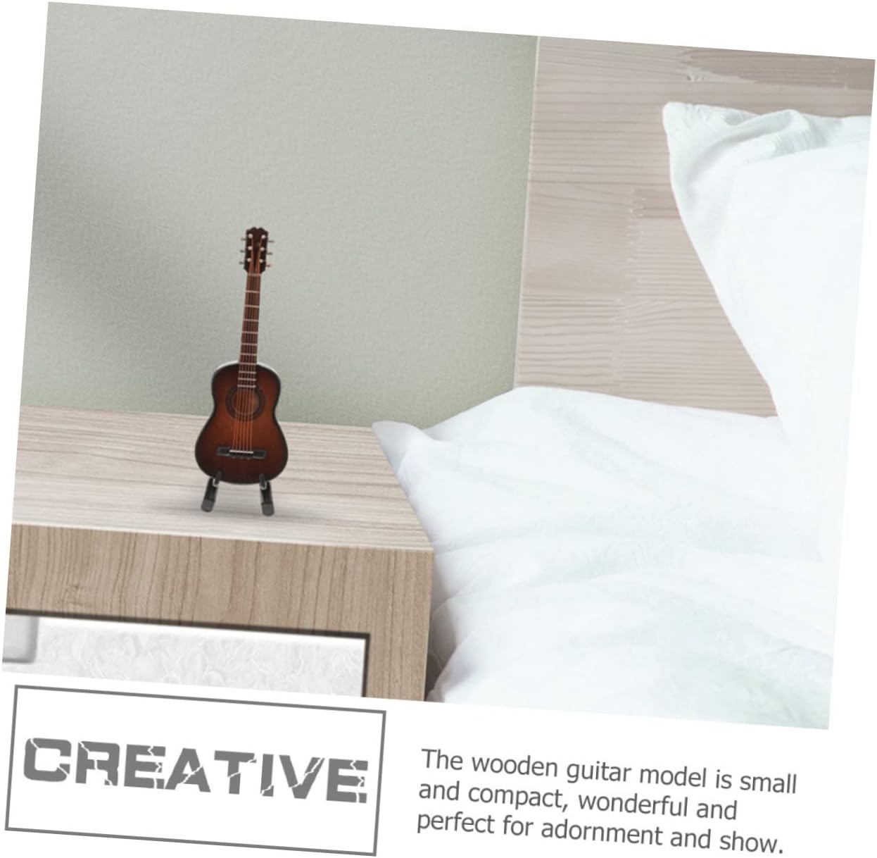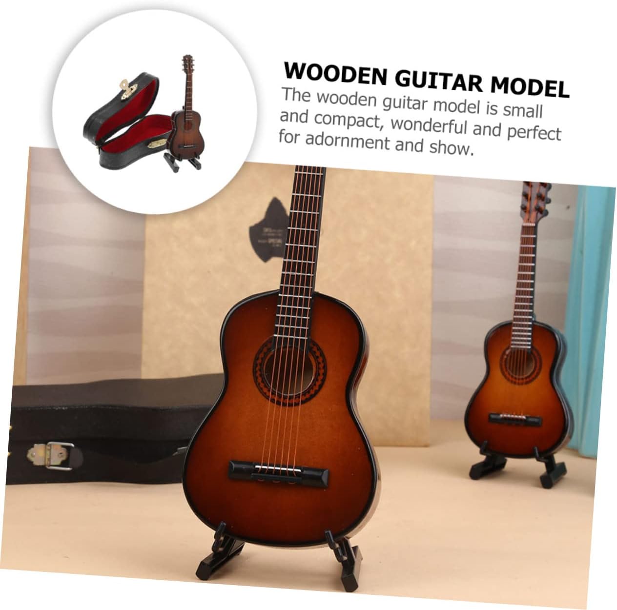 Arredamento in legno: può servire anche come ornamento da scrivania, per aggiungere un'atmosfera artistica e musicale alla tua casa. Modello di chitarra di simulazione: il modello di chitarra in legno è piccolo e compatto, meraviglioso e perfetto per l'ornamento e lo spettacolo. Ukulele per bambini: struttura semplice, facile da usare, adatto per la decorazione e l'esposizione nella casa delle bambole, puoi usarlo con sicurezza. Giocattolo per chitarra in legno: la chitarra in legno è di dimensioni compatte, leggera, facile e comoda da trasportare e riporre quando non viene utilizzata senza alcuno sforzo. Giocattoli in legno: con buona fattura, lucidatura accurata, il modello ha una superficie liscia senza sbavature, sicura per far giocare i tuoi bambini.