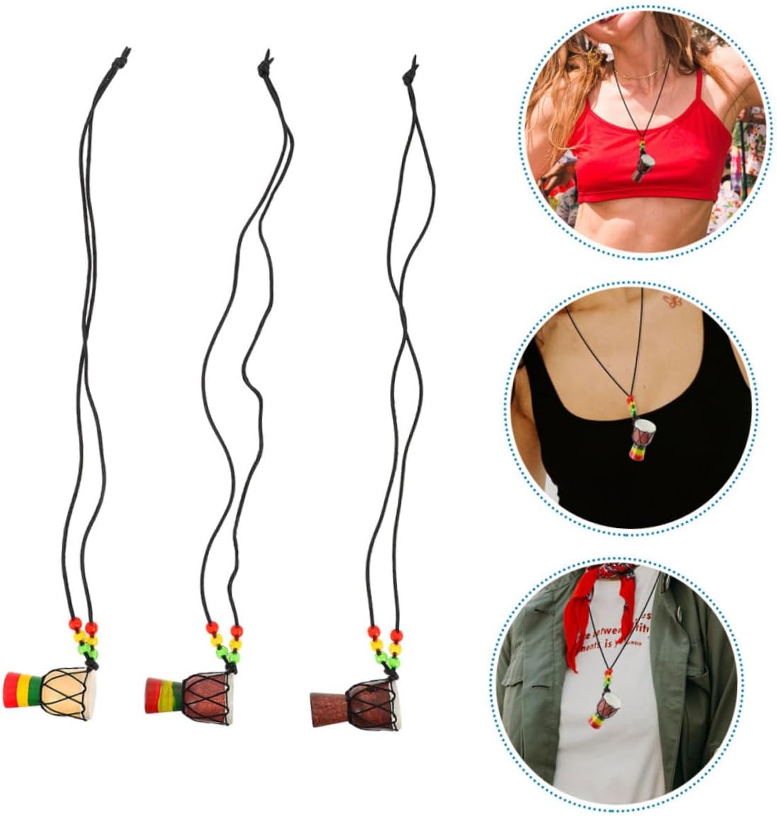 Design in miniatura: la collana con ciondolo a tamburo africano in miniatura è piccola e adorabile, il che la rende facile da trasportare e indossare Eccellenza artigianale: ogni ciondolo a tamburo è meticolosamente realizzato a mano, mettendo in mostra il fascino unico della cultura africana Utilizzo versatile: questo pezzo può essere indossato come collana o attaccato a portachiavi e borse, aggiungendo un tocco di stile personale Materiale robusto: realizzato in legno, il ciondolo è resistente allo sbiadimento e mantiene la sua brillantezza vibrante nel tempo Unico: ideale come per amici e familiari, dimostrando la tua cura e il tuo gusto distintivo