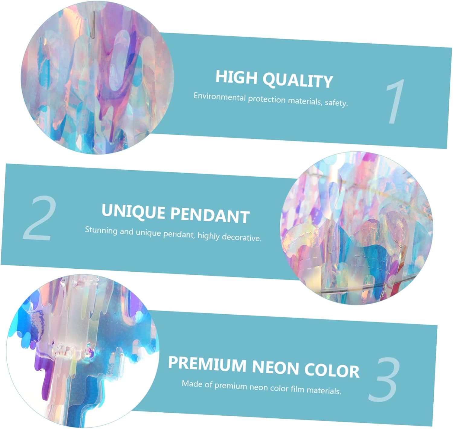 Decorativo soffitto iridescente lucido: il nostro pendente color neon è finemente lavorato ed è di qualità affidabile, un bell'arredamento per le tue feste. Ornamenti per soffitto in lamina: la lavorazione squisita lo rende e di . Lampada a sospensione iridescente: materiali e tecnologia di produzione, e , possono offrirti un utilizzo a lungo termine. Lampadario sospeso: lavorazione squisita: le decorazioni neon sono squisite decorazioni pendenti, con lavorazione squisita, adatte a varie occasioni, adatte per feste a tema fai da te o da utilizzare durante le vacanze, ecc., e possono essere utilizzate oggetti di scena. Ornamento da soffitto iridescente: regalo perfetto per il tuo amante, i tuoi amici e la tua famiglia, a loro piacerà il delicato decoro sospeso.