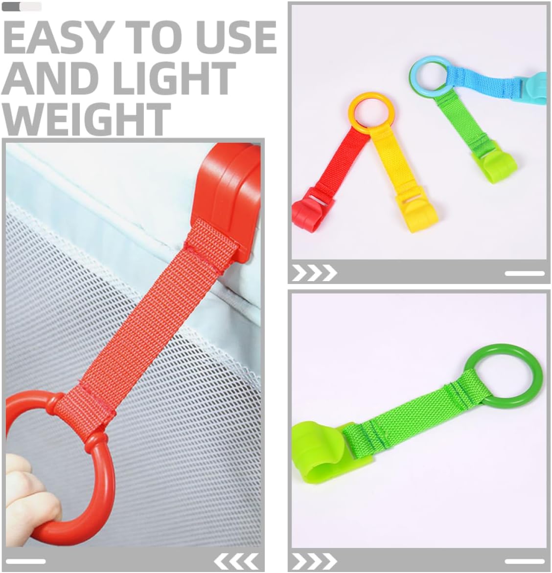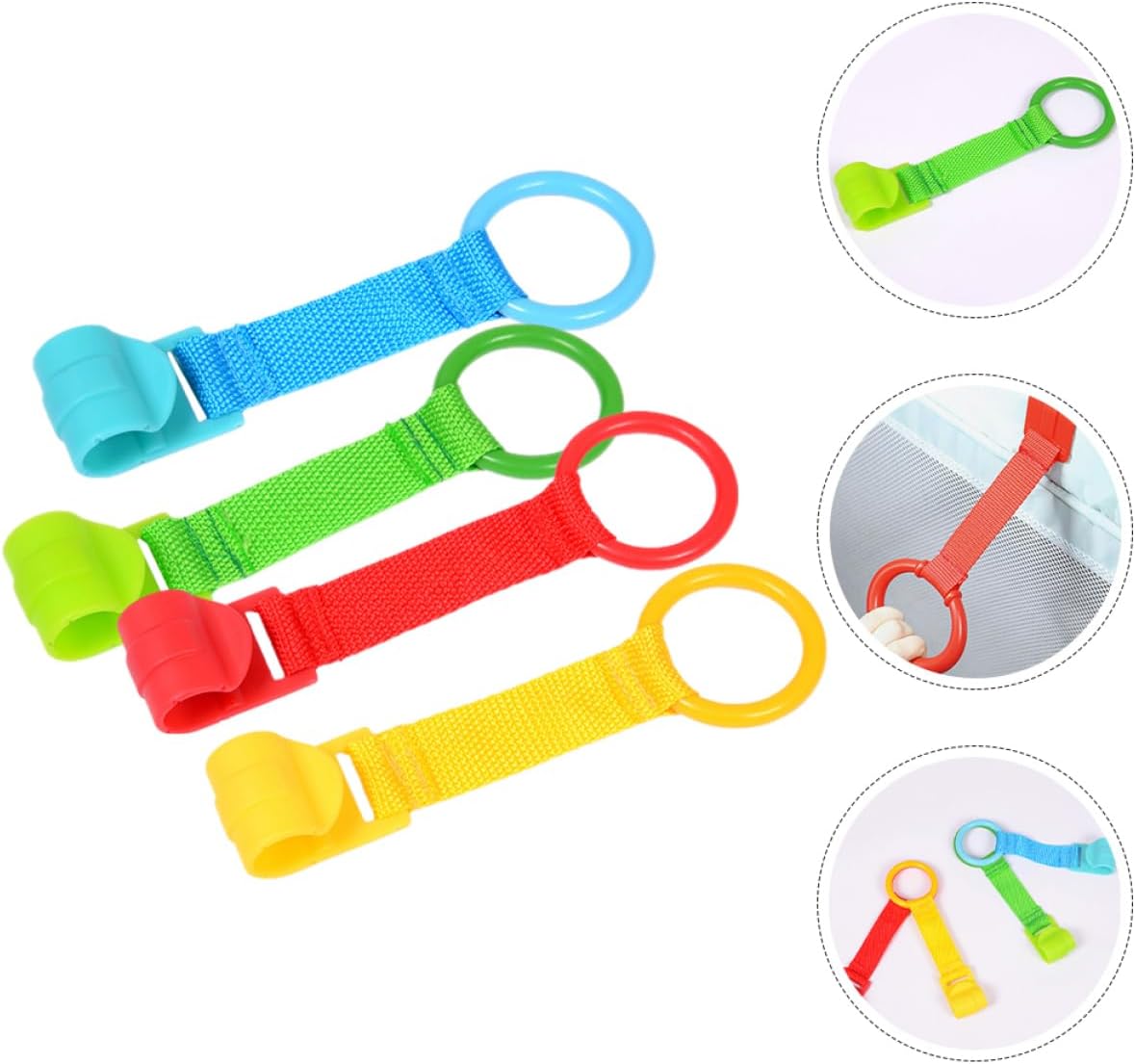 Anelli di trazione per neonati: l'anello di trazione per neonati è abbastanza robusto da essere tirato dal tuo bambino, la clip sul retro dell'anello di trazione è ottima per agganciarlo in modo sicuro al letto del tuo bambino, anelli di trazione per culla Anelli di sostegno per neonati: l'anello di trazione è solo per la mano del tuo bambino, il tuo bambino può comodamente tenere in piedi il lettino per neonati. Anelli da tiro per box: i giocattoli per camminare dei bambini sono di piccole dimensioni, leggeri e facili da trasportare, uno strumento molto pratico per l'addestramento dei bambini a camminare, giocattoli per carrozzine per bambini Anelli per culla per neonati: materiale in plastica e tessuto, questo anello per culla può essere utilizzato in modo sicuro e duraturo per lungo tempo. anelli per lettino per neonati Anelli per aiutare a camminare i bambini: gli anelli per il lettino della cameretta dei bambini possono migliorare la coordinazione di occhi e mani, la vista e le sfumature delle capacità motorie per migliorare la flessibilità dei bambini, anelli da tirare per il recinto del bambino