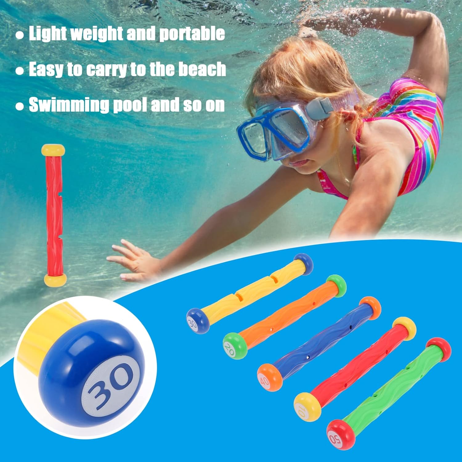 Bastoncini da immersione per piscina: l'eccellente lavorazione dei nostri prodotti ti offrirà un'esperienza di utilizzo impressionante, bastoni da immersione Giocattoli da immersione: i bordi lisci e il design della superficie sono ideali per far giocare i e tenerli in piscina, giocattoli da immersione Giocattoli da nuoto: aiutano i a imparare a immergersi e a promuovere le abilità subacquee, come i giocattoli da immersione in piscina per Accessori per piscina: facili e comodi da trasportare e riporre, portatili e comodi da toccare, leggeri, bastoncini da immersione Giocattoli per piscina per : resistenza all'acqua e all'invecchiamento, inoltre, non sbiadiscono facilmente al sole o danneggiano, giocattoli per piscina