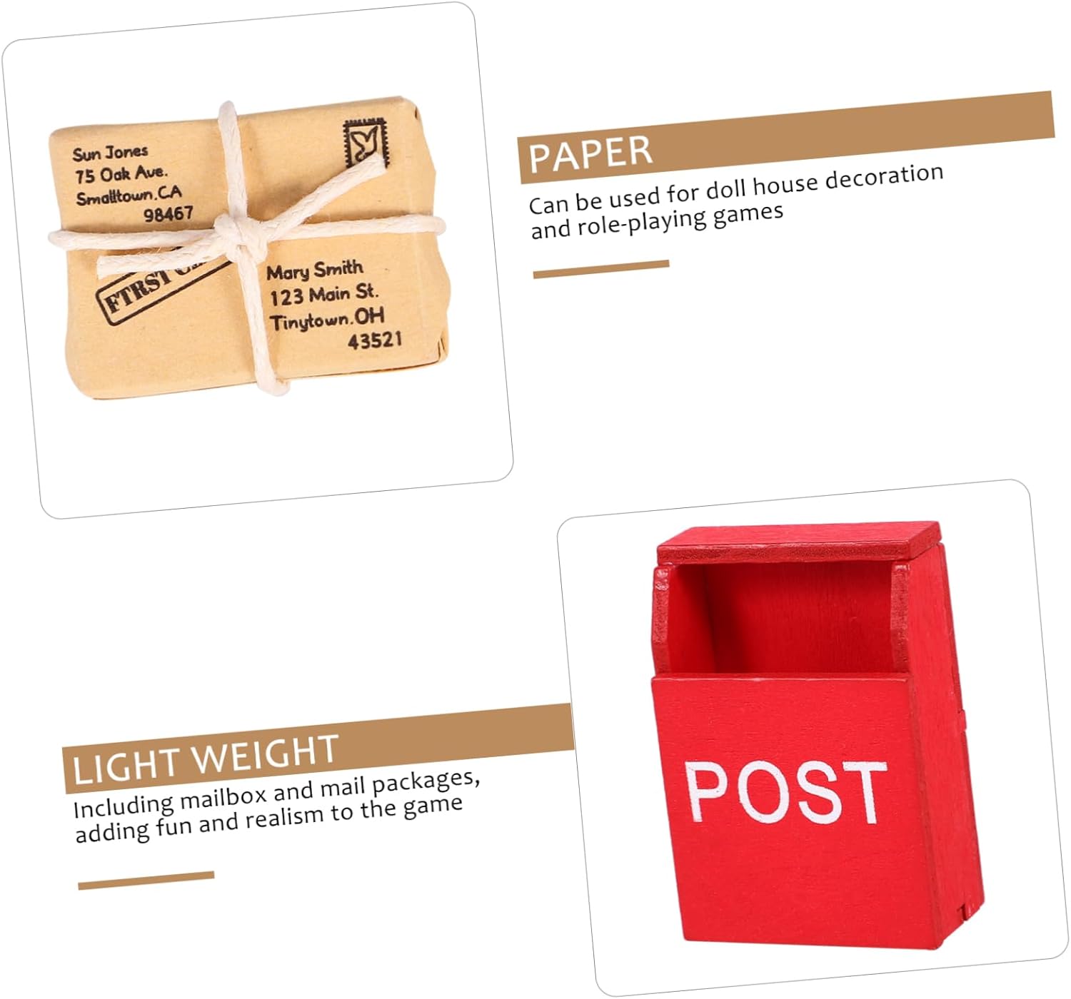 Miniature di pacchi per cassette postali: il legno e il materiale cartaceo sono sicuri e leggeri, resistenti all'usura e pratici per un uso prolungato, accessori per la casa delle bambole. Decorazione mini cassetta postale: adatta per la decorazione di scene in miniatura, micro scene, mini casa o qualsiasi altro posto che ti piace, ornamento di mini pacchi. Modello mini cassetta postale: l'artigianato raffinato mantiene la sua praticità e popolarità, con un design unico, rende i mini ornamenti creativi, decorazioni per pacchi in miniatura. Statuetta mini cassetta postale: un ideale che è appassionato di decorare le proprie mini case, può anche aggiungere atmosfera artistica alla tua casa delle bambole, alla cassetta delle lettere della casa delle bambole. Mini cassette postali: non facile da deformare, superficie liscia senza impurità, cassetta postale in miniatura comoda da usare, cassetta postale per l'arredamento.