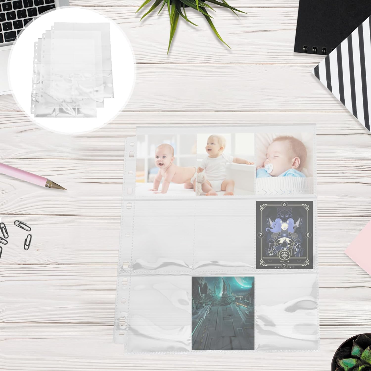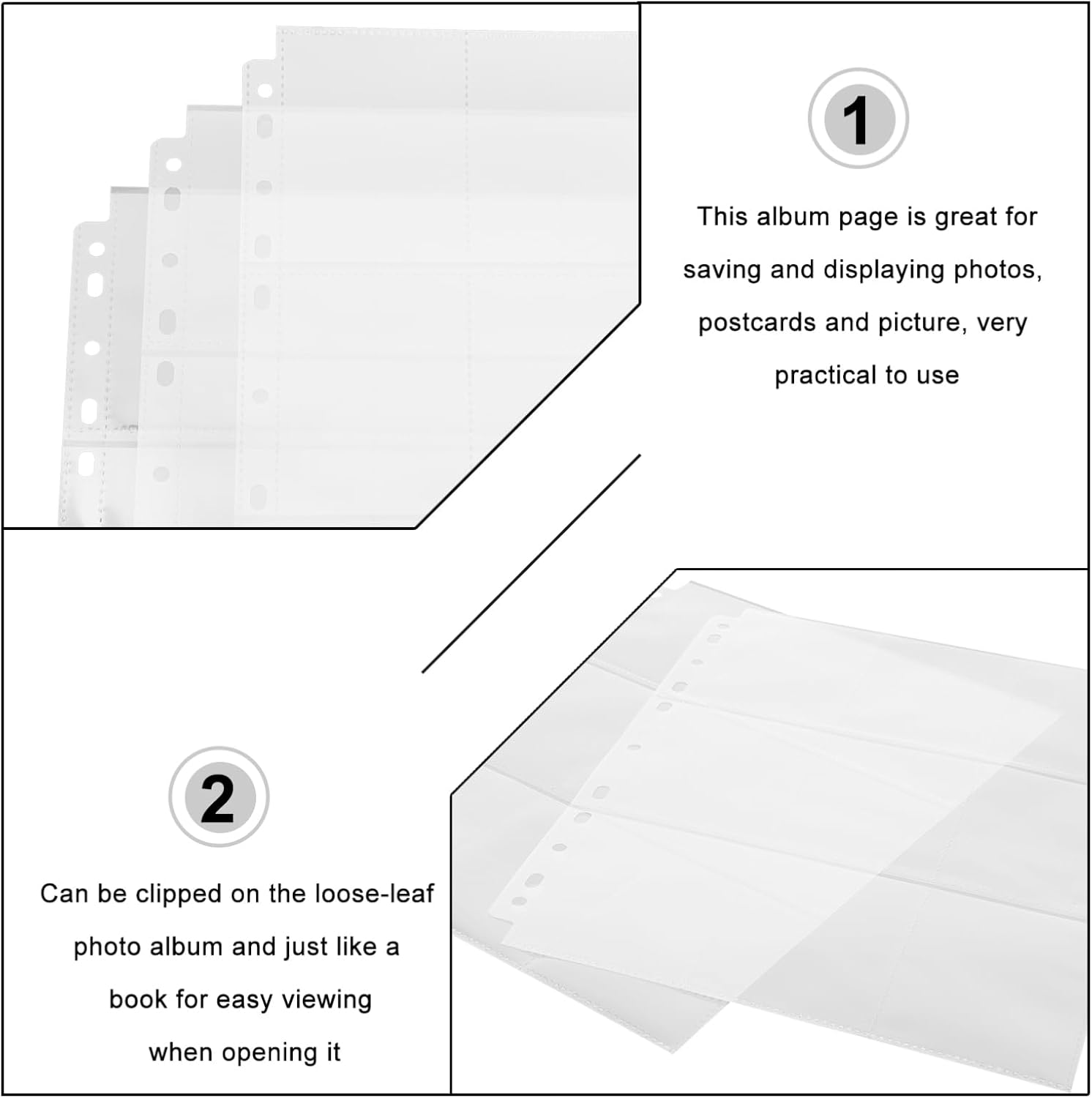 9 bustine porta carte tascabili: queste bustine protettive per carte possono essere utilizzate per sostituire vecchie o rotte tasche porta carte, pagine per carte collezionabili Buste per biglietti: realizzate in materiale pvc, che può durare a lungo, pagine per raccoglitori di biglietti Pagine di carte per raccoglitori: questa pagina di album fotografico può proteggere le tue foto o cartoline, graffi e danni, custodie per carte sportive Pagine delle custodie per carte collezionabili: la pagina trasparente ti consente di visualizzare il contenuto all'interno della pagina in qualsiasi momento, custodie protettive per carte Buste porta-carte: consentono di visualizzare facilmente ogni foto, non solo possono essere utilizzate per archiviare foto, ma anche come strumento di archiviazione per cartoline, immagini, ecc., buste porta-carte collezionabili
