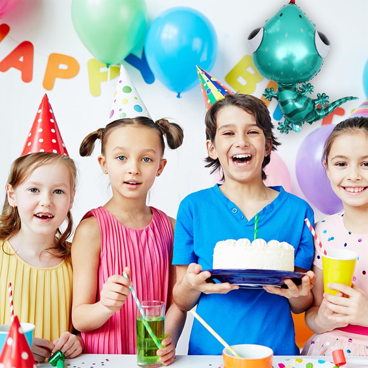 Palloncini a forma di geco per feste: realizzati in pellicola di alluminio/foglio di alluminio, leggeri, di fattura squisita e con tema animale Palloncino geco dei cartoni animati: il palloncino in alluminio ha un motivo chiaro, sembra molto delicato, ottimo per la decorazione estiva, palloncini geco per le feste Palloncino geco per la festa: punto forte della tua festa e la tua attenta disposizione lascerà un'impressione profonda su tutti gli ospiti, palloncini geco per il compleanno delle ragazze Squisito decoro con palloncini: grandi ornamenti per feste a forma di geco aggiungono più divertimento alla festa, al compleanno, ecc. di tuo figlio, palloncini a forma di animali Palloncino in lamina a forma di animale: questo palloncino può essere utilizzato come oggetto di scena per foto, decorazione per feste, decorazione per stanze, decorazione per palchi, palloncino a forma di cartone animato