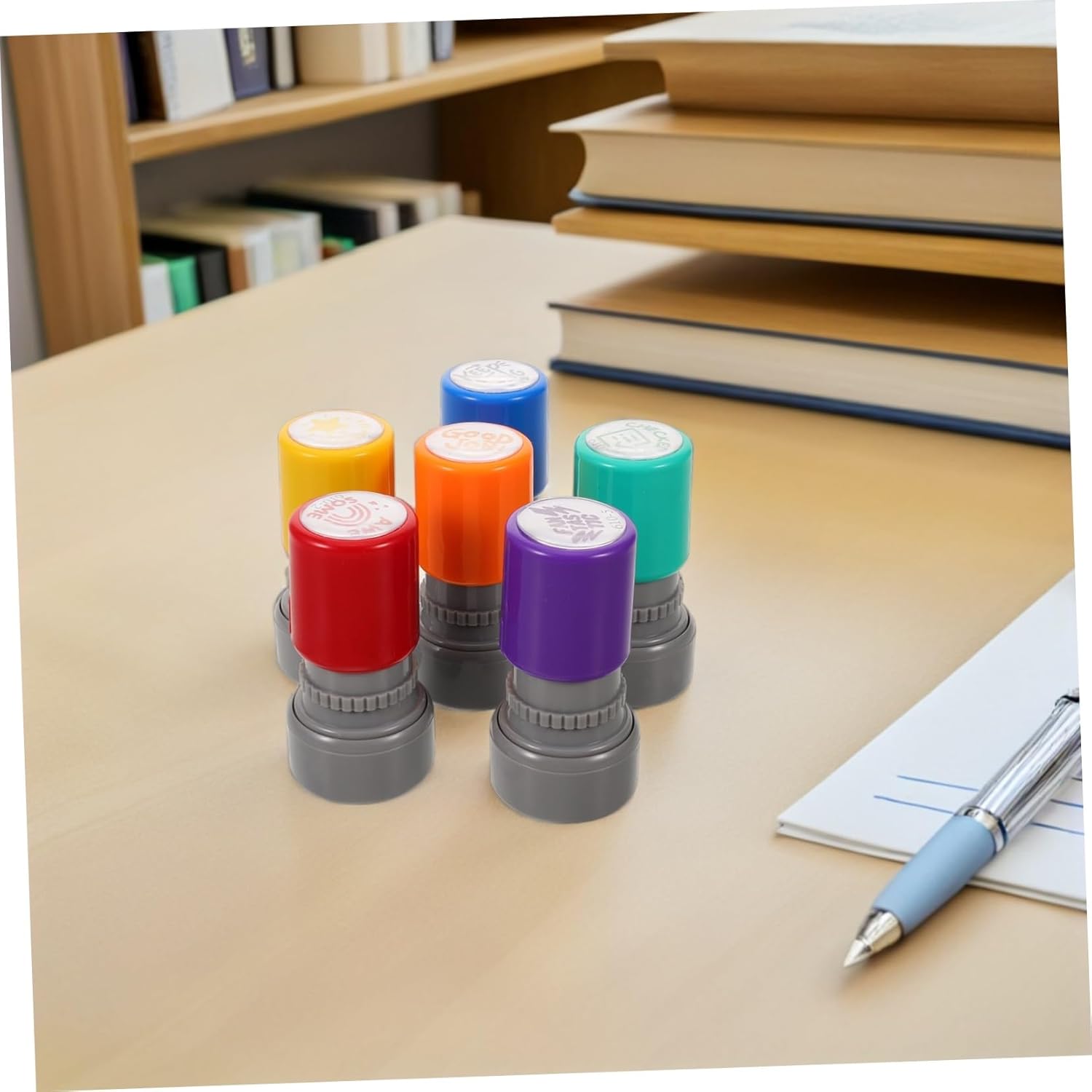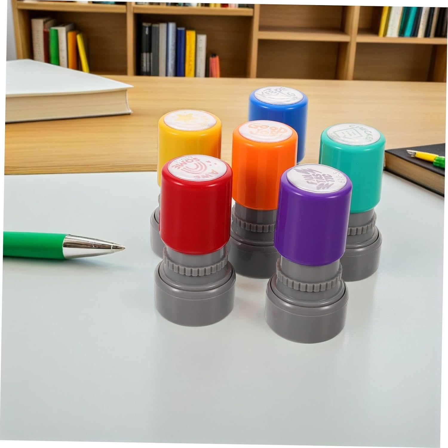 Risparmio di tempo: timbri colorati per la classe, che consentono agli insegnanti di fornire feedback multipli in modo rapido ed efficiente, timbro di ricompensa per i compiti, timbri in gomma per insegnanti Timbri in plastica per l'aula: questi timbri sono stati progettati pensando alla sicurezza dei , garantendo un di apprendimento senza preoccupazioni, timbri autoinchiostranti per la valutazione degli insegnanti, timbri per i compiti per gli insegnanti Apprendimento interattivo: promuove il coinvolgimento tra insegnanti e studenti, materiale didattico per insegnanti, timbro di feedback Timbri colorati: una varietà di timbri colorati arricchisce i metodi di feedback, stimolando la creatività e il coinvolgimento dei giovani studenti, timbro motivazionale per insegnanti, adesivi di valutazione Riconoscimento creativo: aggiunge un tocco giocoso alla valutazione con il timbro, facendo sentire gli studenti apprezzati e motivati a eccellere, timbri di ricompensa per i compiti, adesivi di incoraggiamento per i premi dei
