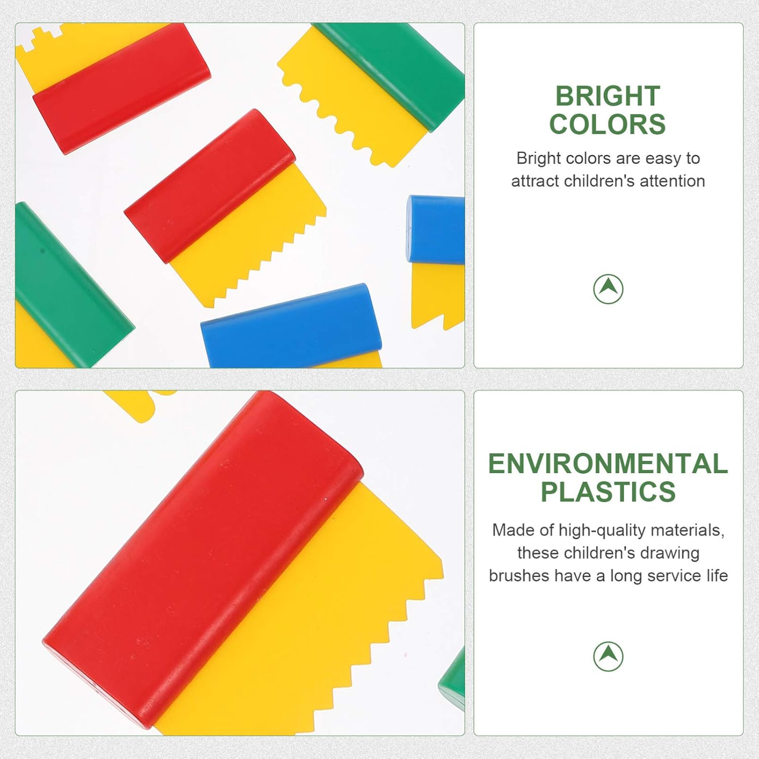 Vernice per bambini: realizzata in materiale plastico, sicura per i bambini. Spugna da disegno per bambini: i bambini possono utilizzare questi strumenti per creare forme, motivi e disegni unici a piacimento. Forme di pittura per bambini: puoi realizzare una varietà di linee diverse. Strumenti per graffiti: ideale per i tuoi amici che hanno bambini, è interessante e divertente. Raschietti per pittura fai da te: questo è strumento pratico e divertente che i tuoi bambini adoreranno.