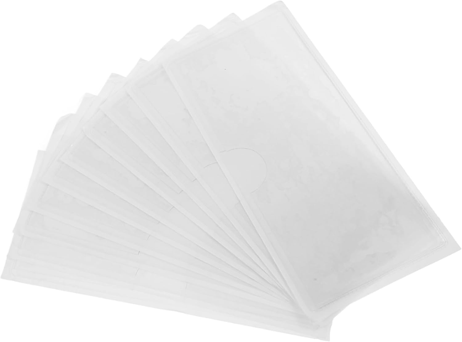Tasche per etichette adesive: ideali per abbonamenti per parcheggi, badge, carte, biglietti, passaporti, appunti e alcuni articoli di carta. Buste per carte in plastica: design elegante: aspetto alla moda, forte adesione, non facile da far cadere. Buste per carte di credito: adatte per l'applicazione su attrezzature meccaniche, scaffali di magazzini, scaffali di supermercati, bacheche, parabrezza di automobili, scatole e altro ancora. Tasche coprietichette-- facile da usare: basta staccare il adesivo e attaccarlo all'oggetto desiderato. Copertine delle etichette indice: è comodo da usare di classificazione e il design della custodia della scheda indice ne semplifica l'utilizzo rispetto all'etichetta del logo.