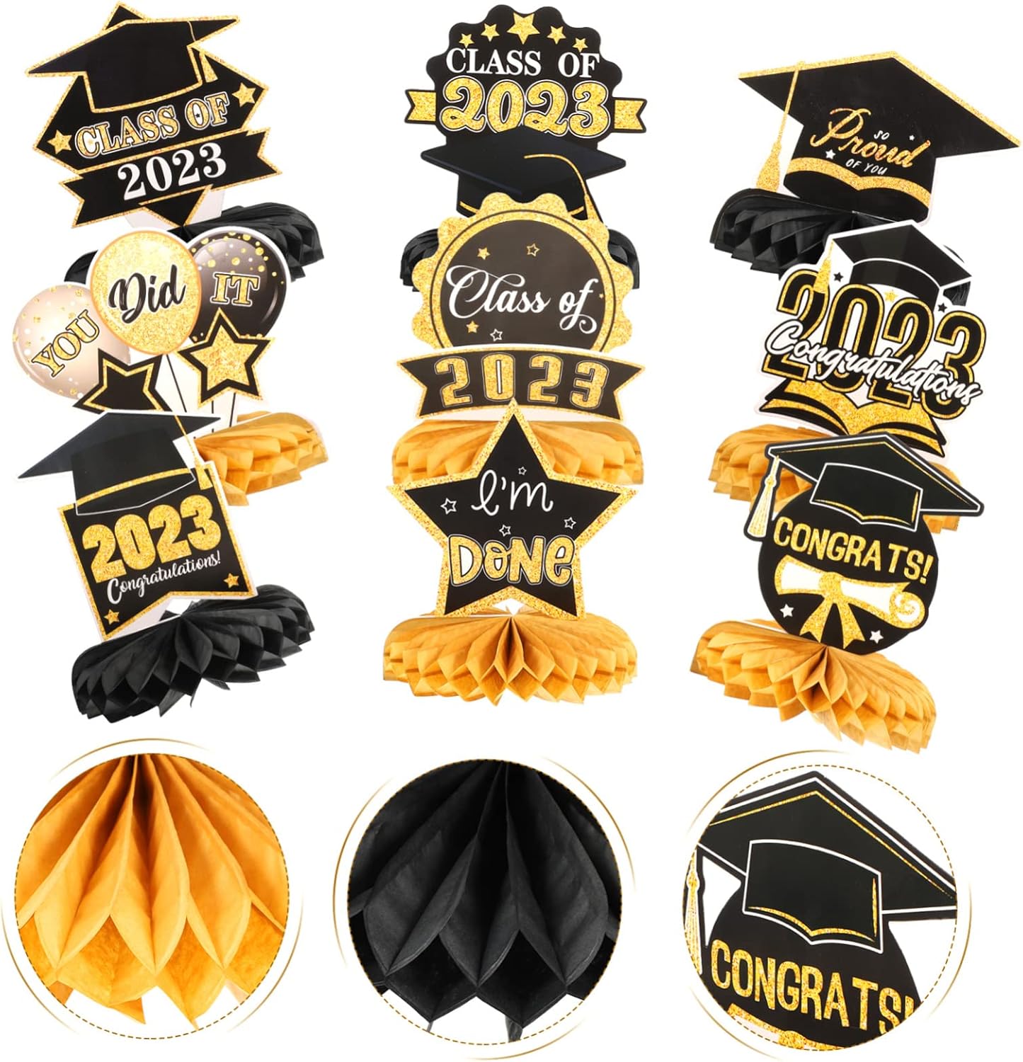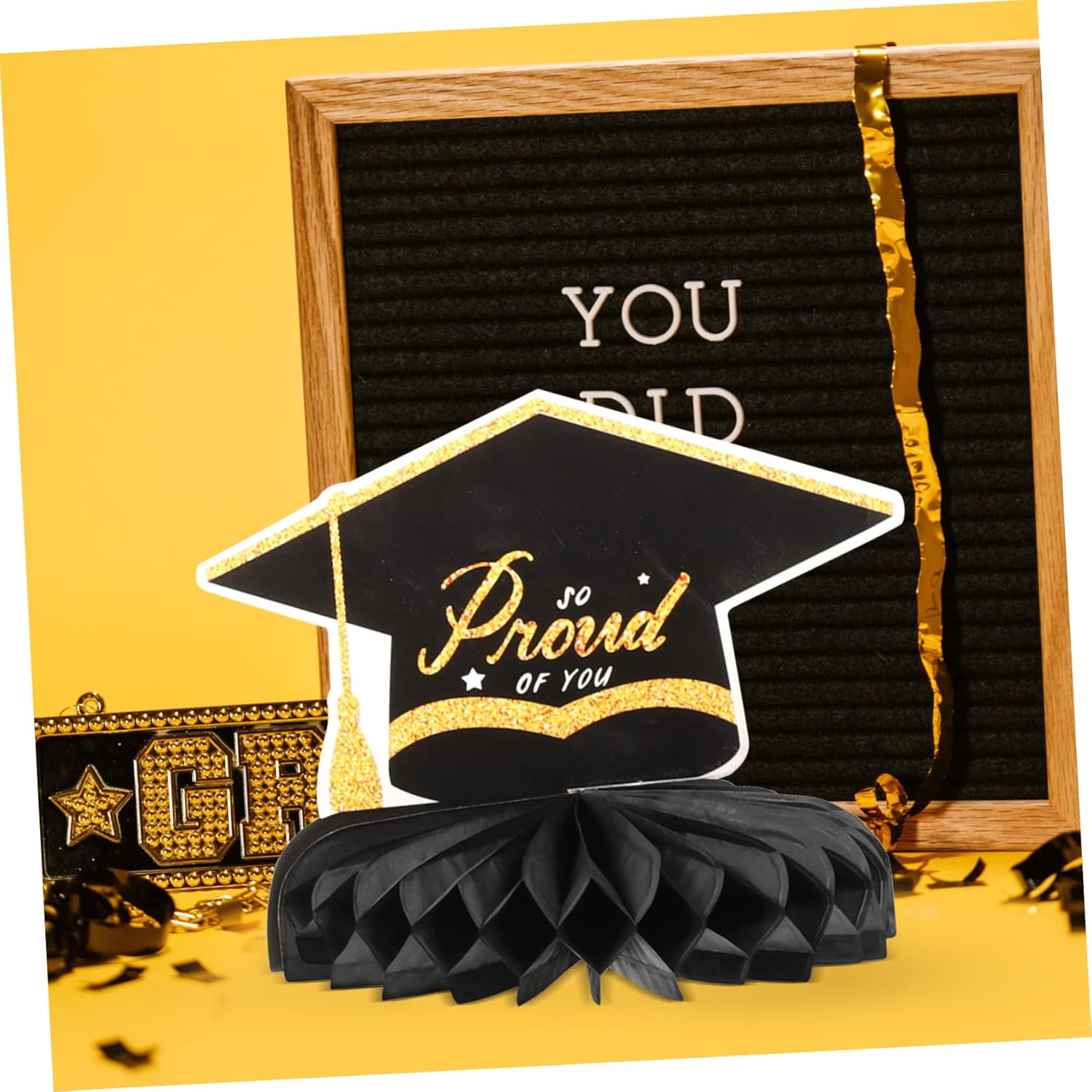 Decorazione per feste a nido d'ape - Adatta per decorare la casa, l'aula, il corridoio, l'ufficio, il tavolo, ecc. Il centrotavola a nido d'ape per la laurea nella classica combinazione di colori nero e oro si abbina bene alle feste di laurea. Favi di carta - Decorare la tua casa e la tua festa con i nostri centrotavola a nido d'ape sarà il momento clou della tua festa. Decorazioni per la laurea a nido d'ape - Decorare la tua casa e la tua festa con i nostri centrotavola a nido d'ape sarà un grande successo alla tua festa. Decorazioni a nido d'ape per cappello da laurea: queste decorazioni a nido d'ape impressioneranno i tuoi ospiti e assicureranno un'emozionante festa di laurea. Targhe per tavolo di laurea in carta: la decorazione a nido d'ape è realizzata con buoni materiali che hanno le proprietà.