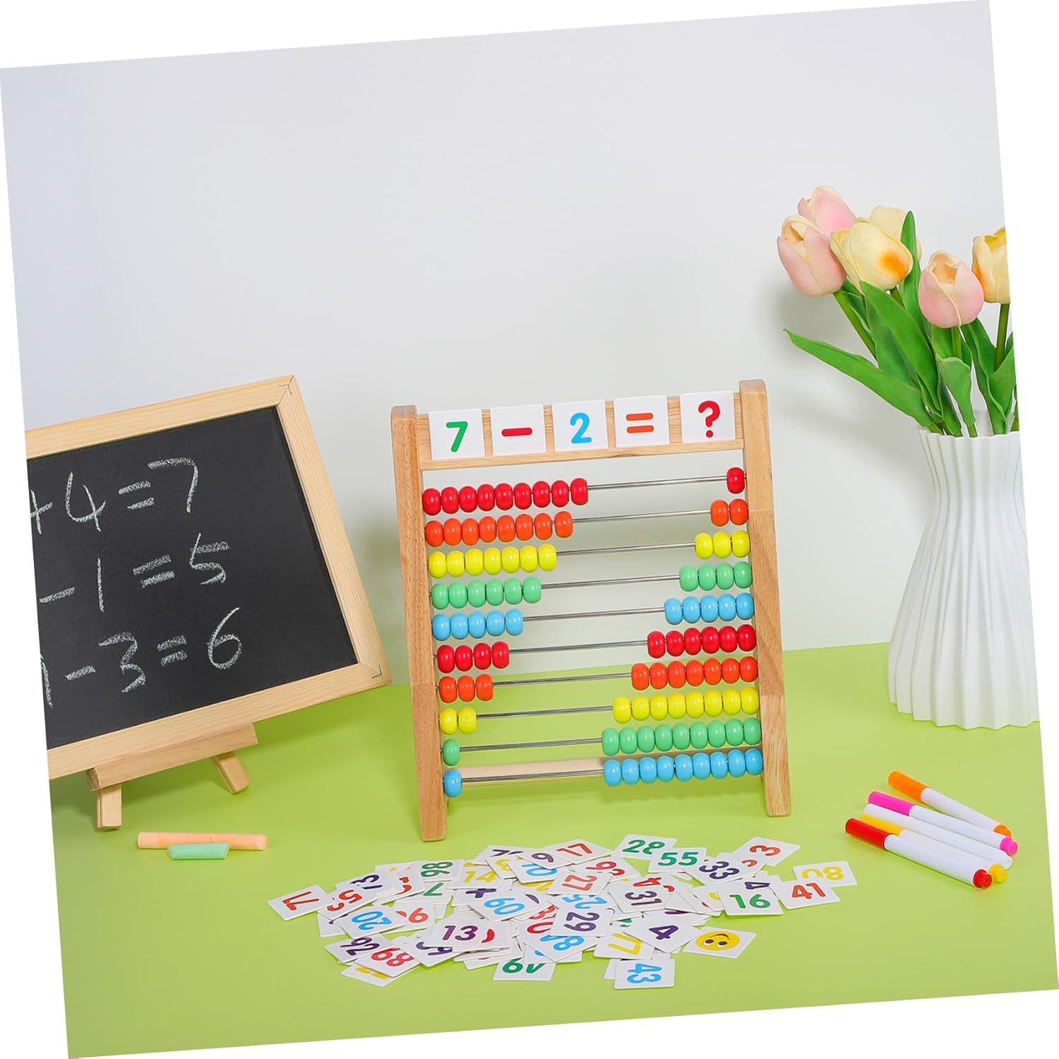 Carte numeriche: le carte numeriche allegate aiutano i bambini piccoli a riconoscere più numeri e a risolvere semplici problemi aritmetici. Sono giocattoli aritmetici per bambini e strumenti di conteggio per bambini. Giocattolo per l'apprendimento della matematica: può essere utilizzato per insegnare una varietà di concetti matematici tra cui conteggio, addizione, sottrazione e altro, ideale per bambini di tutte le età e livelli di abilità, giocattoli per abbinare numeri, giocattoli per l'educazione precoce Migliora le abilità matematiche: aiuta i bambini a sviluppare abilità di conteggio precoci e ad aumentare il loro interesse per la matematica. Perline per contare per bambini, giocattoli educativi per la matematica Idea regalo perfetta: regala questo adorabile abaco in legno come ricompensa per i tuoi studenti o come giocattolo premuroso e gioioso con perline matematiche per bambini, puzzle numerici Aiuto per l'insegnamento della matematica: abbinato a varie carte numeriche, questo giocattolo per l'apprendimento della matematica incoraggia i bambini a risolvere problemi di matematica attraverso indizi, strumenti matematici per bambini, giocattoli per l'apprendimento della matematica per contare