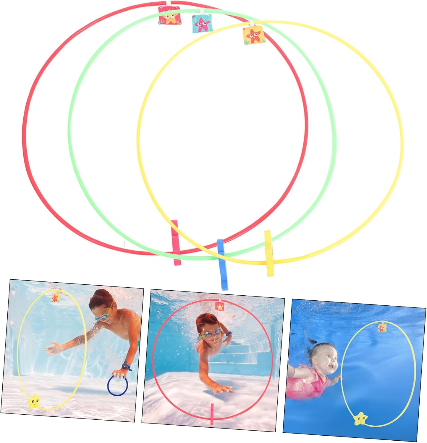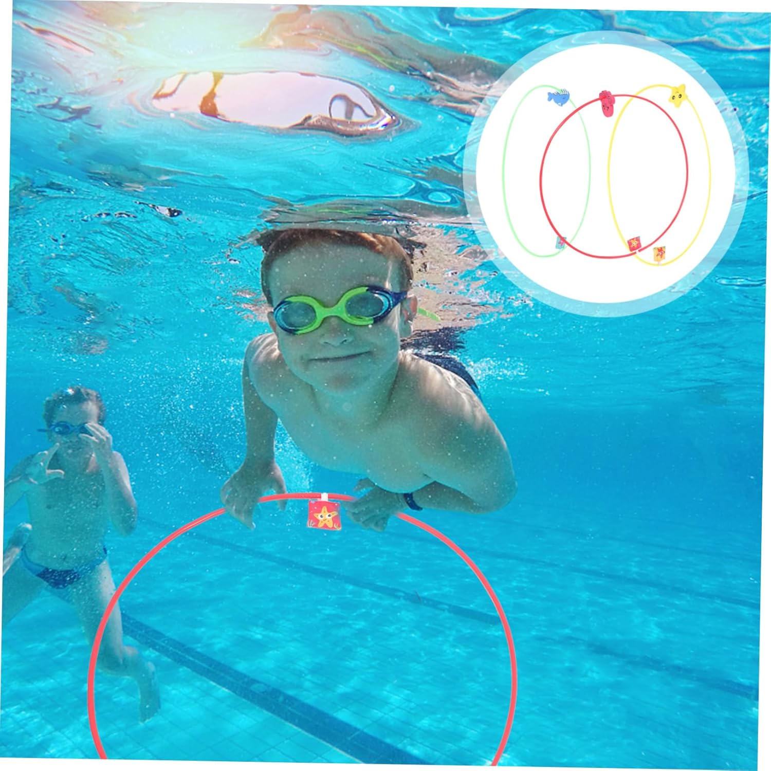 Cerchio da piscina: i bordi sono lisci e non devi preoccuparti di ferire le mani dei tuoi bambini, giocattoli da tuffo per bambini Anelli da piscina per bambini che si immergono: questo da immersione è un eccellente strumento di allenamento per il nuoto subacqueo, puoi usarli per più giochi diversi, anelli da piscina per nuotare Anelli da nuoto per bambini: il design dell'anello offre stabilità e supporto ai principianti che imparano a immergersi, cerchi da immersione Anelli da immersione: il giocattolo da immersione può aumentare il divertimento in piscina con i tuoi bambini, piscina attraverso gli anelli Anelli da piscina per bambini: i colori vivaci possono aiutare a stimolare la vista del tuo bambino, incoraggiandolo a toccare ed esplorare, giocattoli da nuoto