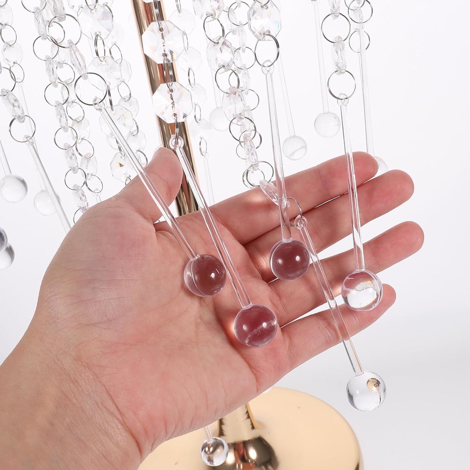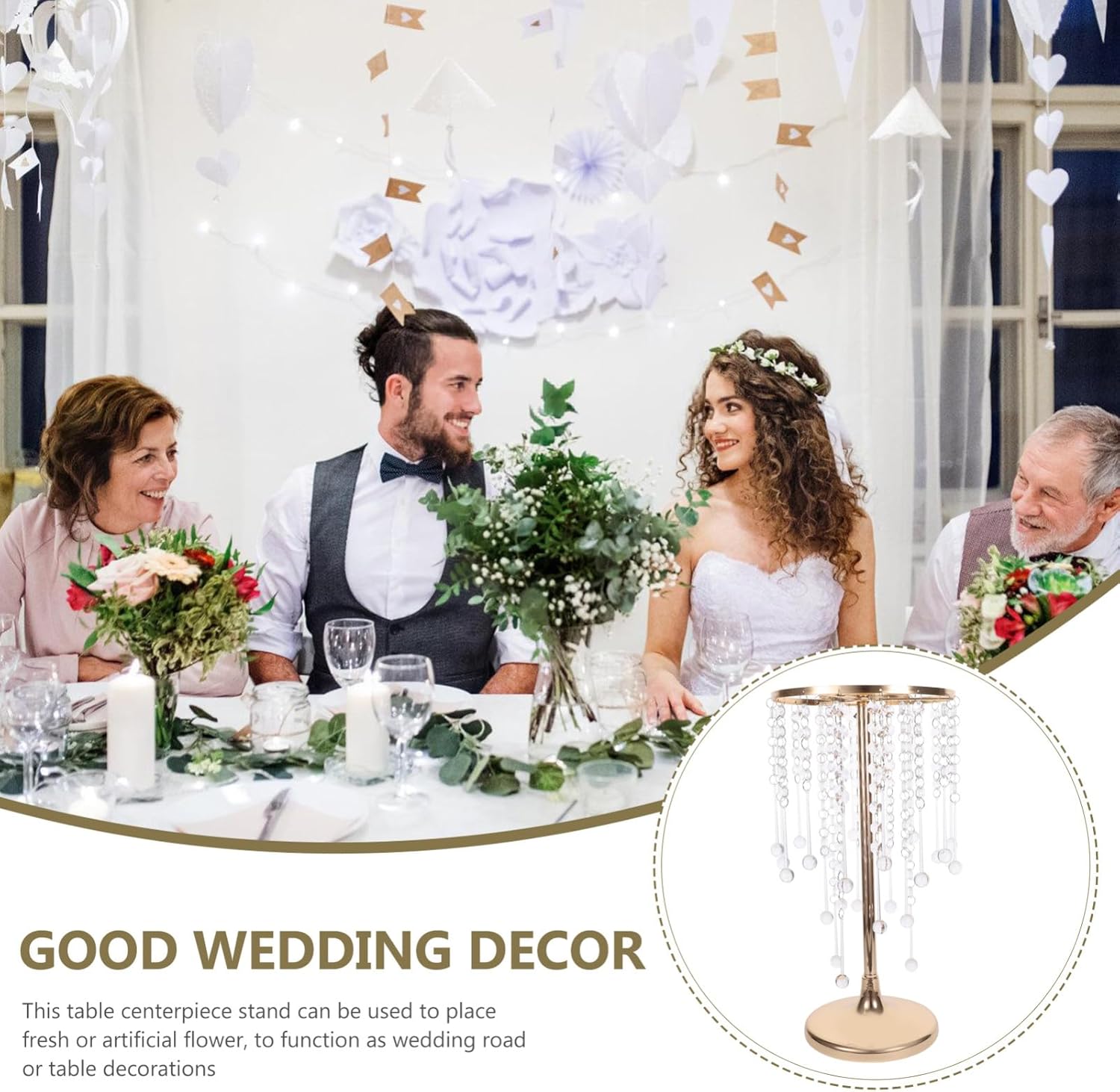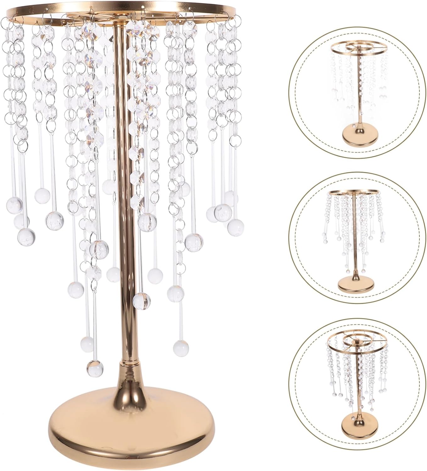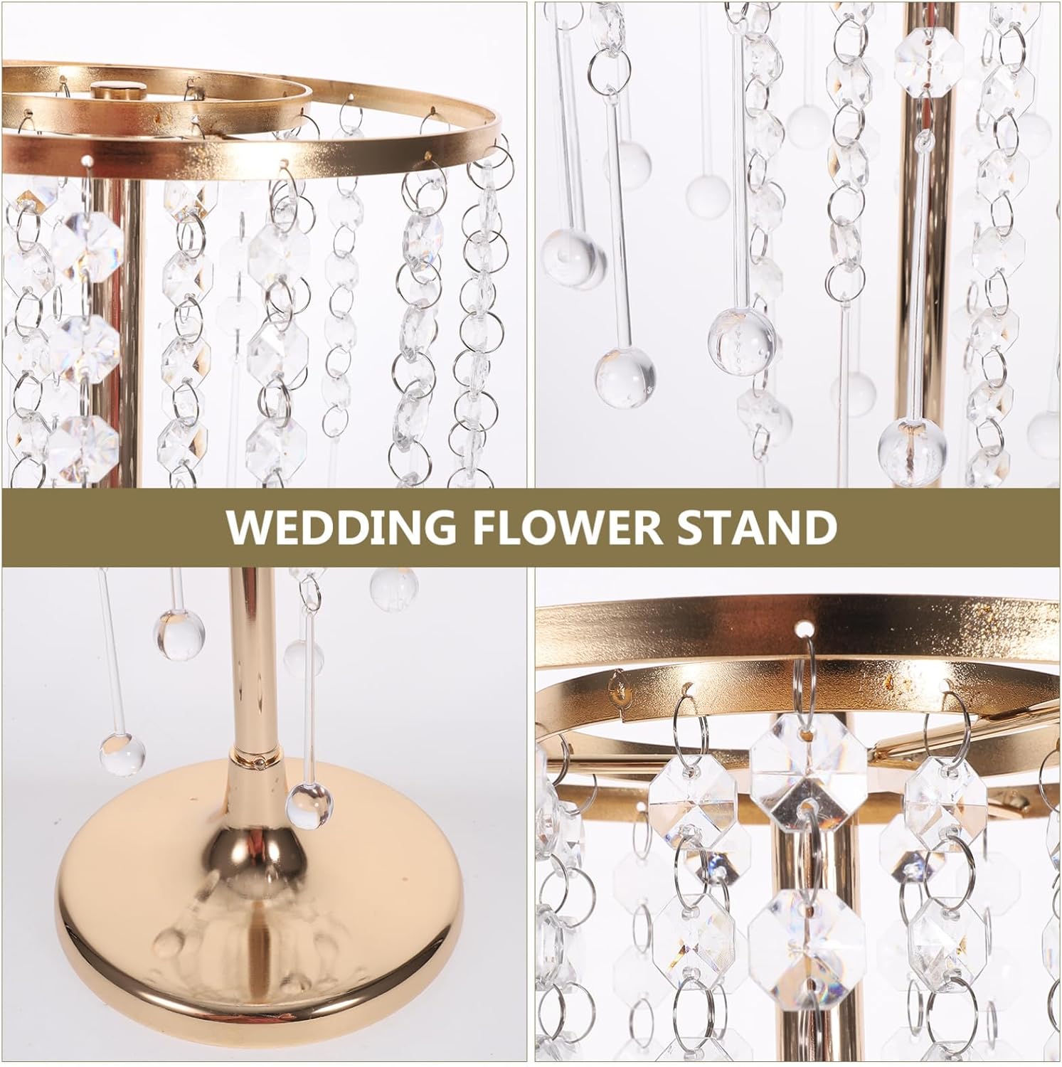 Supporto per fiori matrimonio: questo supporto per fiori è un bellissimo oggetto che costituirebbe splendido centrotavola o una decorazione per la tavola. Decorazioni di nozze per la casa: ampiamente utilizzate per occasioni interne o esterne e sono ottimi strumenti per chi organizza un matrimonio. Decorazione centrotavola tavolo pranzo: abbellimento con perline di cristallo, elegante e chic, aggiungerà un tocco di al tuo evento di nozze. Centrotavola per vasi matrimonio: un supporto per fiori pratico, professionale e decorativo per la composizione floreale, offre comodità. Supporto per fiori per matrimonio: - il vaso alto in cristallo multifunzionale è il fantastico arredamento per matrimoni, che può abbinarsi ad altre decorazioni per feste di matrimonio.