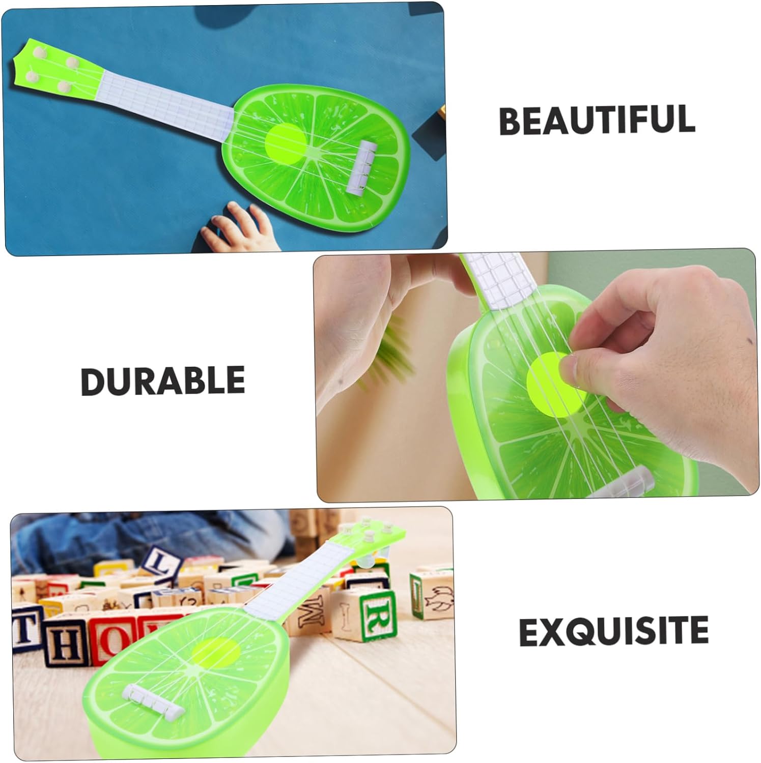 Giocattoli per chitarra per : questi giocattoli creativi per chitarra sono adatti ai pratici che sono interessati alla musica e all'imitazione della chitarra Giocattolo per strumenti musicali per : questi giocattoli per chitarra daranno al tuo spazio illimitato per esibirsi, rendendolo più sicuro di sé, giocattolo per ukulele per Chitarra simulata: realizzata con buoni materiali in abs, questo giocattolo per chitarra è per un uso duraturo, strumenti per chitarra in plastica Chitarra dal design mini frutta: adozione di materiale di fascia alta e abs, giocattoli molto robusti e precoci per l'apprendimento musicale Giocattolo per : può essere inviato ai tuoi come compleanno o festa, molto creativo e pratico, accessorio per spettacoli teatrali per