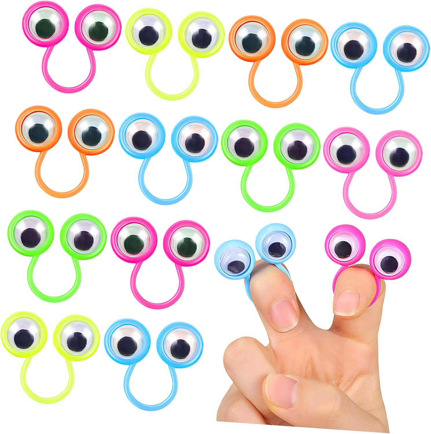 Giocattoli con le dita: aiutano i bambini a usare la loro immaginazione per creare il proprio mondo interiore. È uno per amici e familiari, un burattino da dito per gli occhi - Burattino da dito per gli occhi: il bulbo oculare sul giocattolo ad anello può attirare l'attenzione dei bambini e portare gioia ai bambini. un interessante anello per gli occhi, cerchi per gli occhi, bulbo oculare, marionette da dito: marionette da dito, per - e teatro delle marionette, narrazione, lezioni, giochi di ruolo, presentazioni, giochi, feste e feste interattive con le dita: possono essere utilizzate senza rischio di lesioni, poiché tutti i bordi sono lisci e ci sono superfici ruvide, giocattolo con le dita, giocattolo con le dita: attraverso l'interazione sociale e la comunicazione tra i bambini, contribuisce a sviluppare importanti competenze sociali e promuovere relazioni positive tra i bambini, mini marionette da dito a mano.