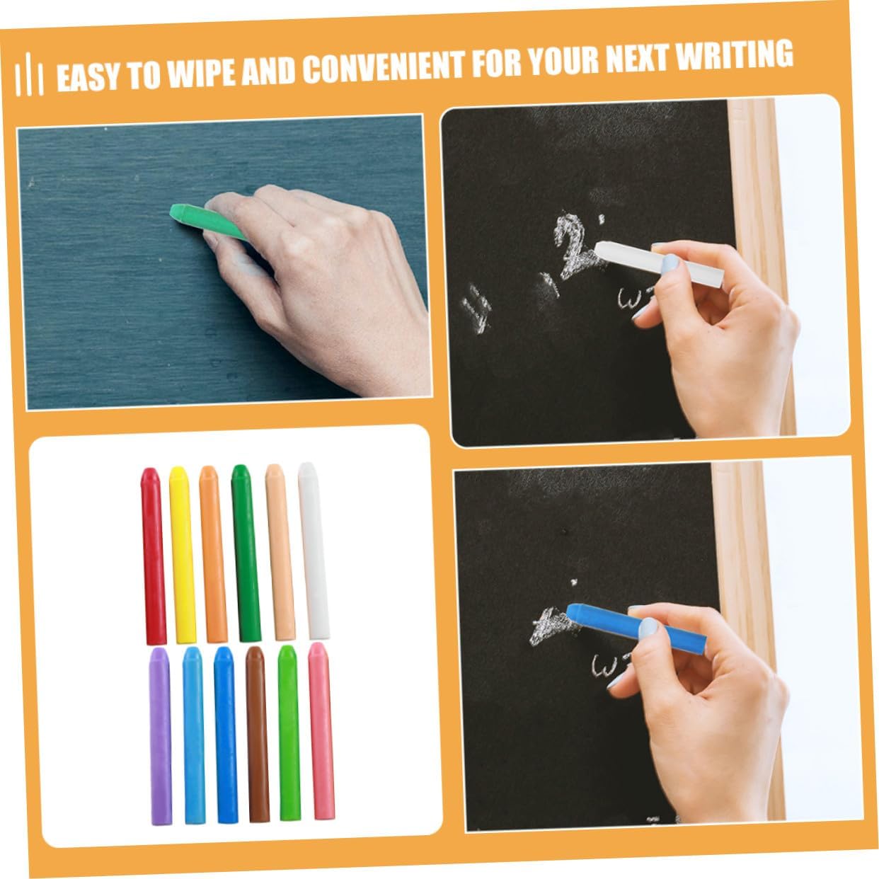 Gesso per uso esterno: gesso solubile in acqua, facile da pulire e comodo per la prossima scrittura e pittura sulla stessa lavagna, gesso per la lavagna Gesso per dipingere: porta diversi divertimenti alla pittura, così il tuo piccolo amico può crearne e disegnarne di nuovi liberamente, gesso in grandi quantità Gesso per interni: la proprietà facile da pulire di questi gessetti senza polvere li rende utilizzabili ripetutamente in aule o campi da gioco all'aperto, Gesso da disegno colorato Lavagna colorata: una quantità sufficiente può soddisfare le diverse esigenze di utilizzo ed è sufficiente da tramandare. Lavagna senza polvere, gesso lavabile: il gesso senza polvere è bianco con impugnatura comoda e facile per schizzi e disegni fluidi