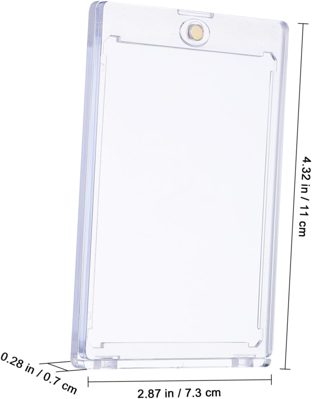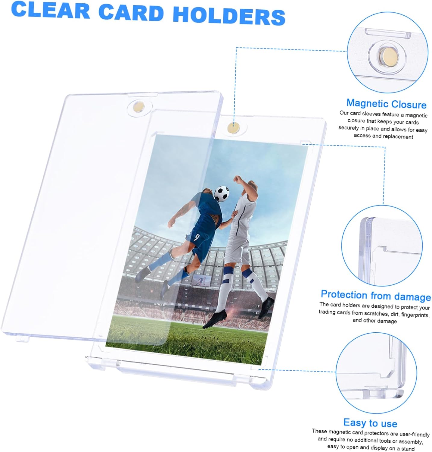 Protezione danni: i porta carte sono progettati per proteggere le tue carte collezionabili da graffi, sporco, impronte digitali e altri danni, porta carte magnetiche trasparenti, porta carte collezionabili Chiara visibilità: i nostri porta carte magnetici presentano un aspetto estremamente chiaro che fornisce una chiara visibilità per le tue carte collezionabili all'interno, vetrina per carte da baseball, espositore per carte collezionabili Chiusura sicura: le nostre protezioni per carte forniscono una tenuta ermetica con una chiusura magnetica, impedendo che le carte fuoriescano o danneggino durante il trasporto, protezioni per carte rigide, custodia per carte Uso versatile: i nostri porta carte magnetici trasparenti sono di dimensioni adeguate per carte collezionabili, carte sportive, carte da gioco, carte celebrità, ecc., buste spesse per carte, display per carte collezionabili Chiusura magnetica: le nostre custodie per carte sono dotate di una chiusura magnetica che mantiene le tue carte saldamente in posizione e consente un facile accesso e sostituzione, porta carte da baseball in plastica dura, protezioni trasparenti per carte