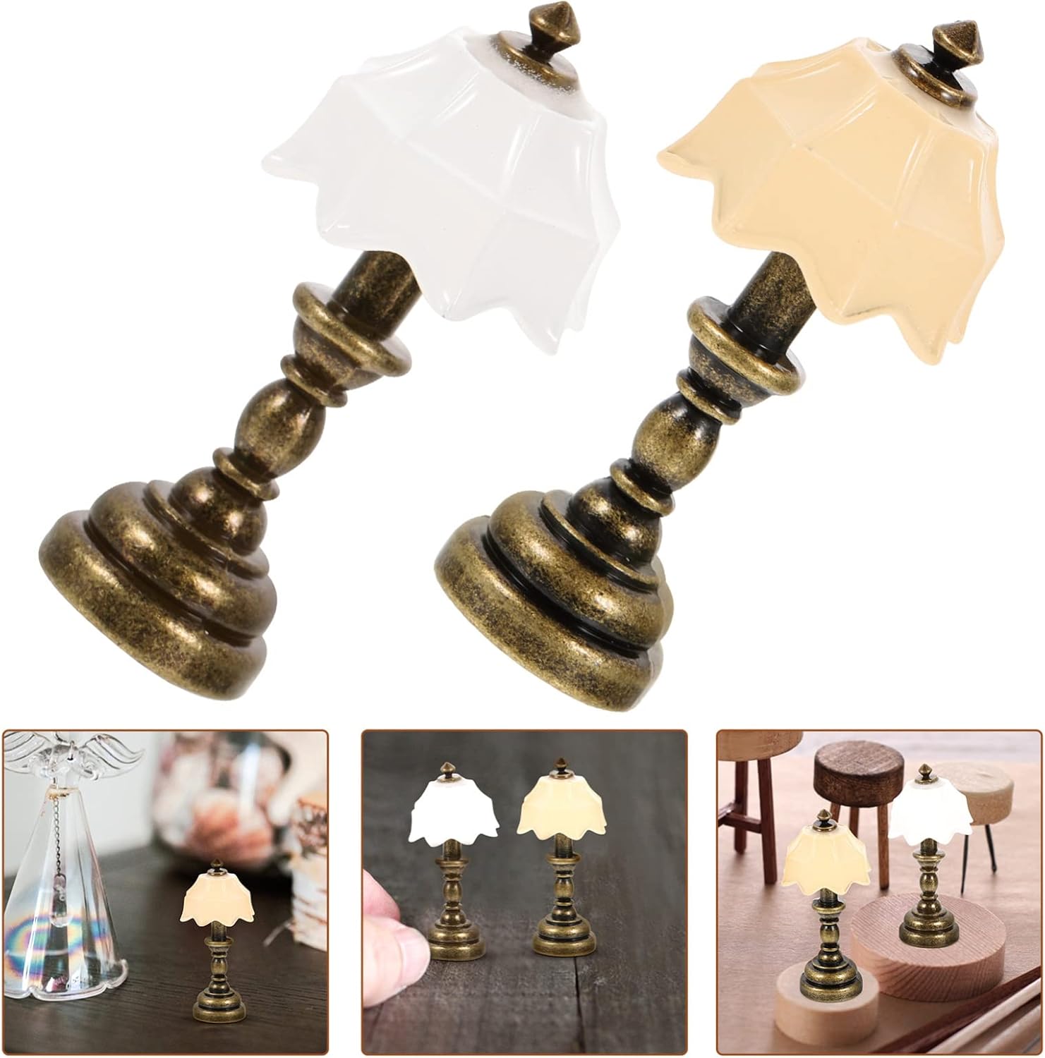Accessori per la casa minuscola: questa lampada da tavolo mini ornamento è un accessorio per la casa minuscola, può adattarsi a diverse e può essere ben abbinata, mini luce Lampada da camera in miniatura: progettata con funzioni complesse e dettagliate, la lampada in miniatura dona alla tua scena in miniatura un giocattolo in miniatura realistico per la casa delle bambole Lampada in miniatura: il modello di lampada in miniatura è adatto per una varietà di stili di arredamento in miniatura, tra cui lampada da comodino moderna, vintage e tradizionale per piccole case Lampada piccola: la lampada da comodino in miniatura aggiunge un tocco di luce da casa delle bambole alla decorazione della tua stanza in miniatura e all'illuminazione della casa delle bambole: il modello mini lampada è compatto e leggero, facile da spostare e posizionare ovunque, mini decorazione della casa