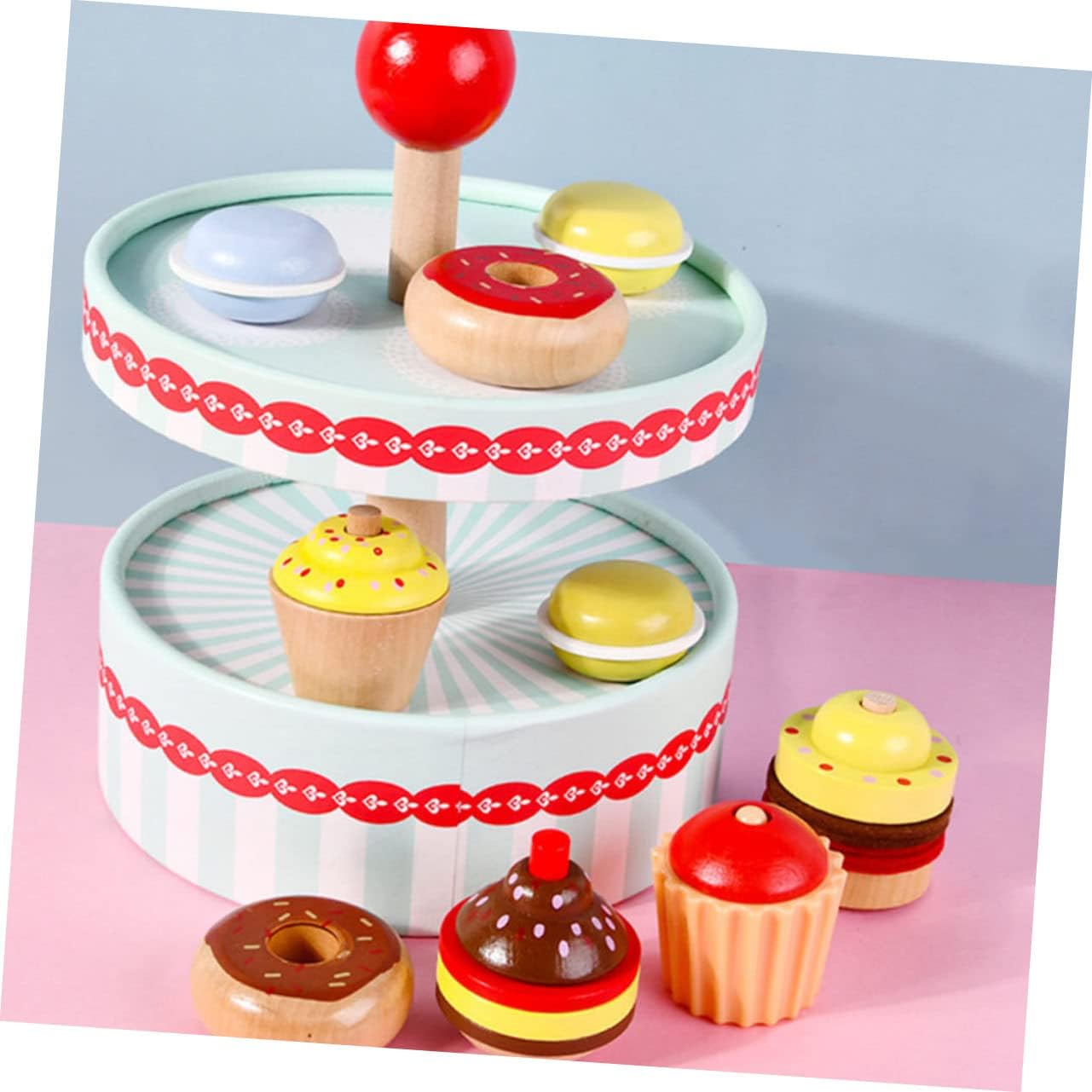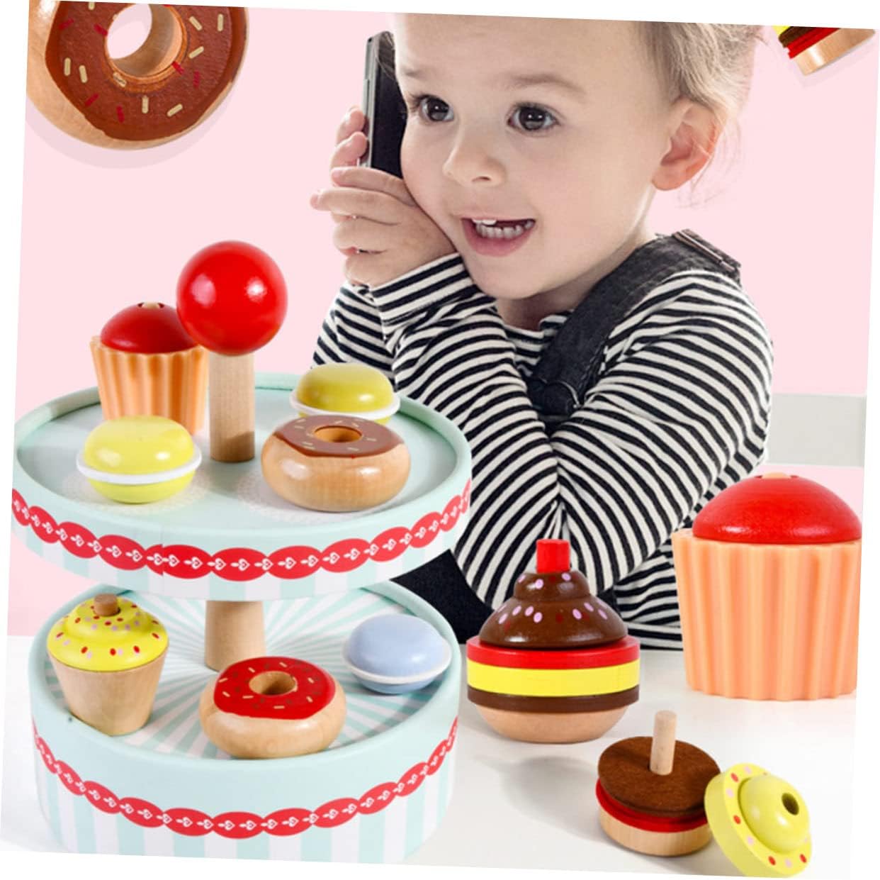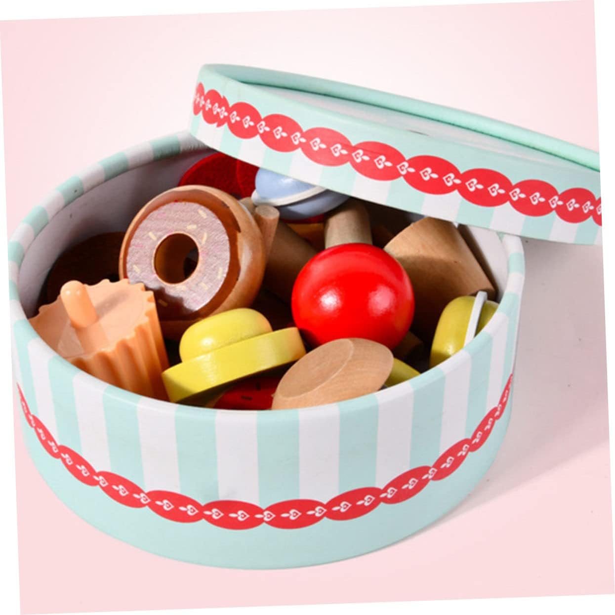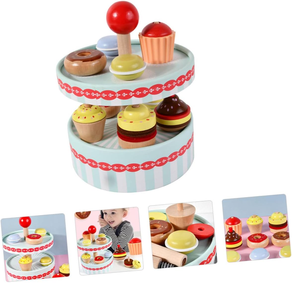 Realizzato in materiale di legno , sicuro per fingere di fare il tè e portatile da portare. Aiuta a coltivare la capacità di pensare ai bambini, espandere la conoscenza e altro ancora. Migliora l'abilità cognitiva del bambino e promuovi la capacità di identificare il , promuovere il senso di realizzazione dei bambini. vivido e giocattoli a tema dessert davvero adorabili, i bambini possono divertirsi con il loro piccolo partner. Aumentando la relazione dei genitori-figlio e l'amicizia dei bambini con questo giocattolo del dessert di simulazione.