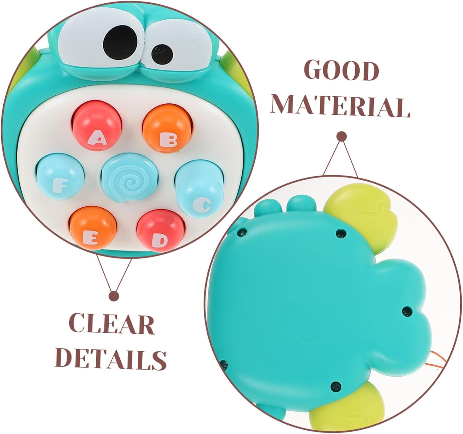 Divertimento di apprendimento interattivo: incoraggia lo sviluppo cognitivo precoce introducendo la conoscenza dell'alfabeto attraverso un gioco coinvolgente, promuovendo l'amore per l'apprendimento nei bambini piccoli Mini design portatile: compatto e leggero, adatto per l'intrattenimento in movimento, che consente ai bambini di sviluppare capacità motorie e velocità di reazione sempre e ovunque Unico e accattivante: il design distintivo aggiunge un tocco di personalità, rendendolo un giocattolo eccezionale con cui i bambini adoreranno giocare e mostrare Colori vivaci: catturano l'attenzione dei bambini migliorando la percezione visiva e aiutandoli a imparare a identificare e differenziare i colori Adatto al familiare: adatto a ragazzi e ragazze, questo giocattolo promuove il gioco interattivo, creando ricordi gioiosi e rafforzando i familiari