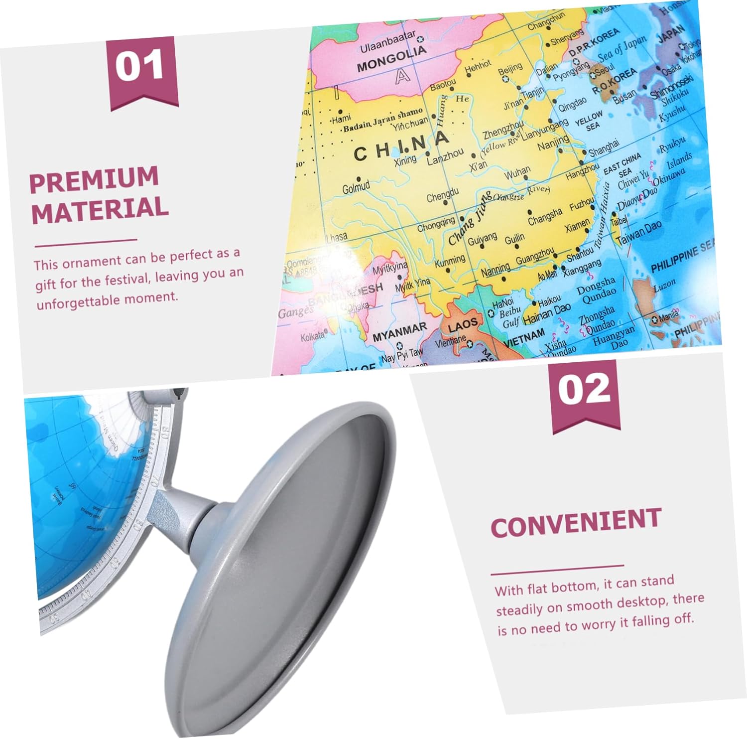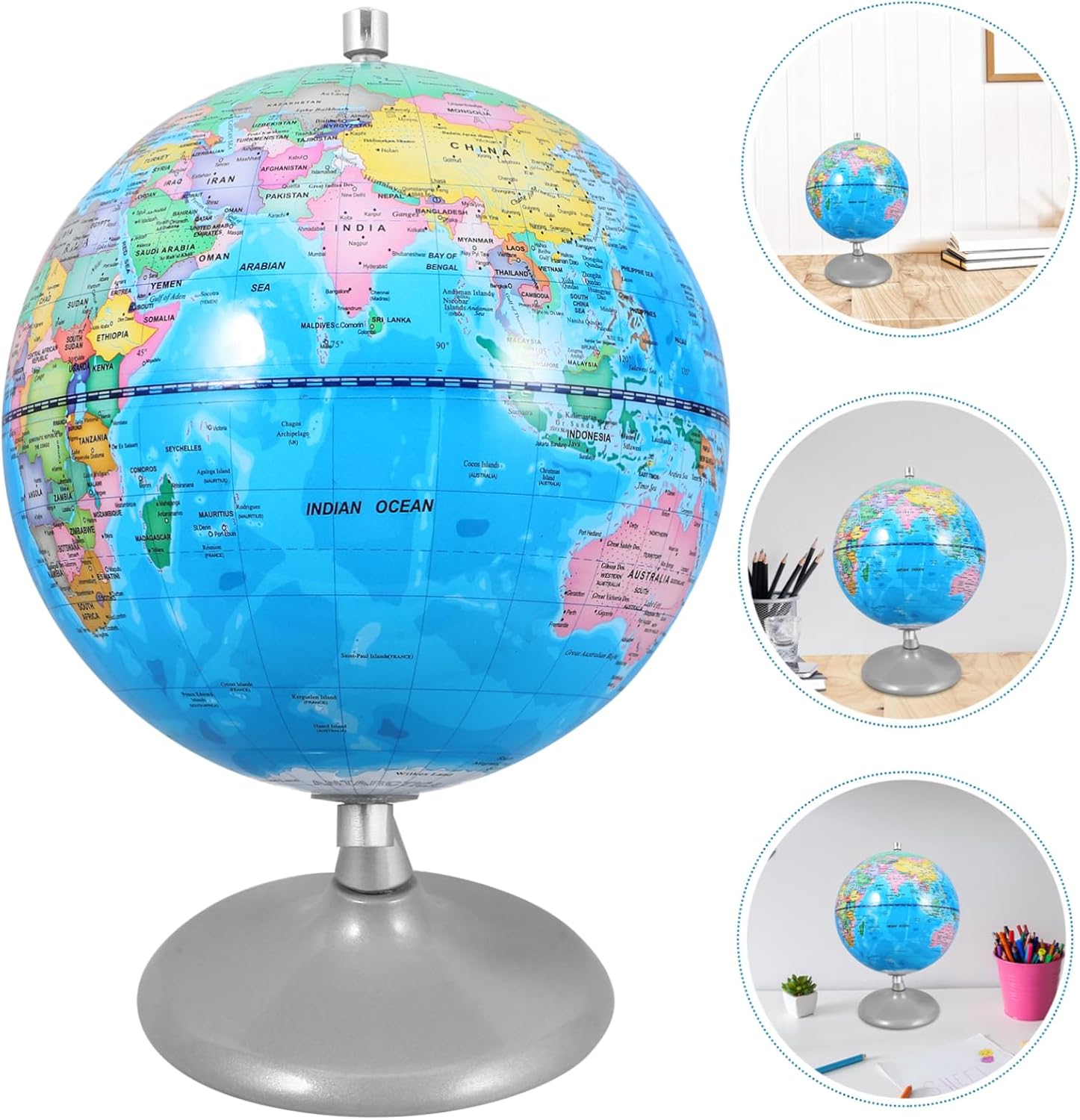 Globi: il materiale in ferro e il processo di produzione lo rendono resistente e possono offrirti un globo lunare Mini globo: perfetto per famiglie, bambini, amici, può decorare le feste in casa e il soggiorno, globo per bambini Mappa del mondo per l'aula: il globo è uno strumento educativo che offre ai bambini un modo divertente per imparare la geografia, globi del mondo per adulti Mappamondo per l'apprendimento dei bambini: questa decorazione adotta una base robusta che sostiene e bilancia tutto il corpo, impedendogli di ribaltarsi, globi del mondo Globi scolastici: il globo può essere un ottimo oggetto fotografico per scattare foto indimenticabili con la tua famiglia o i tuoi amici, mini globo terrestre