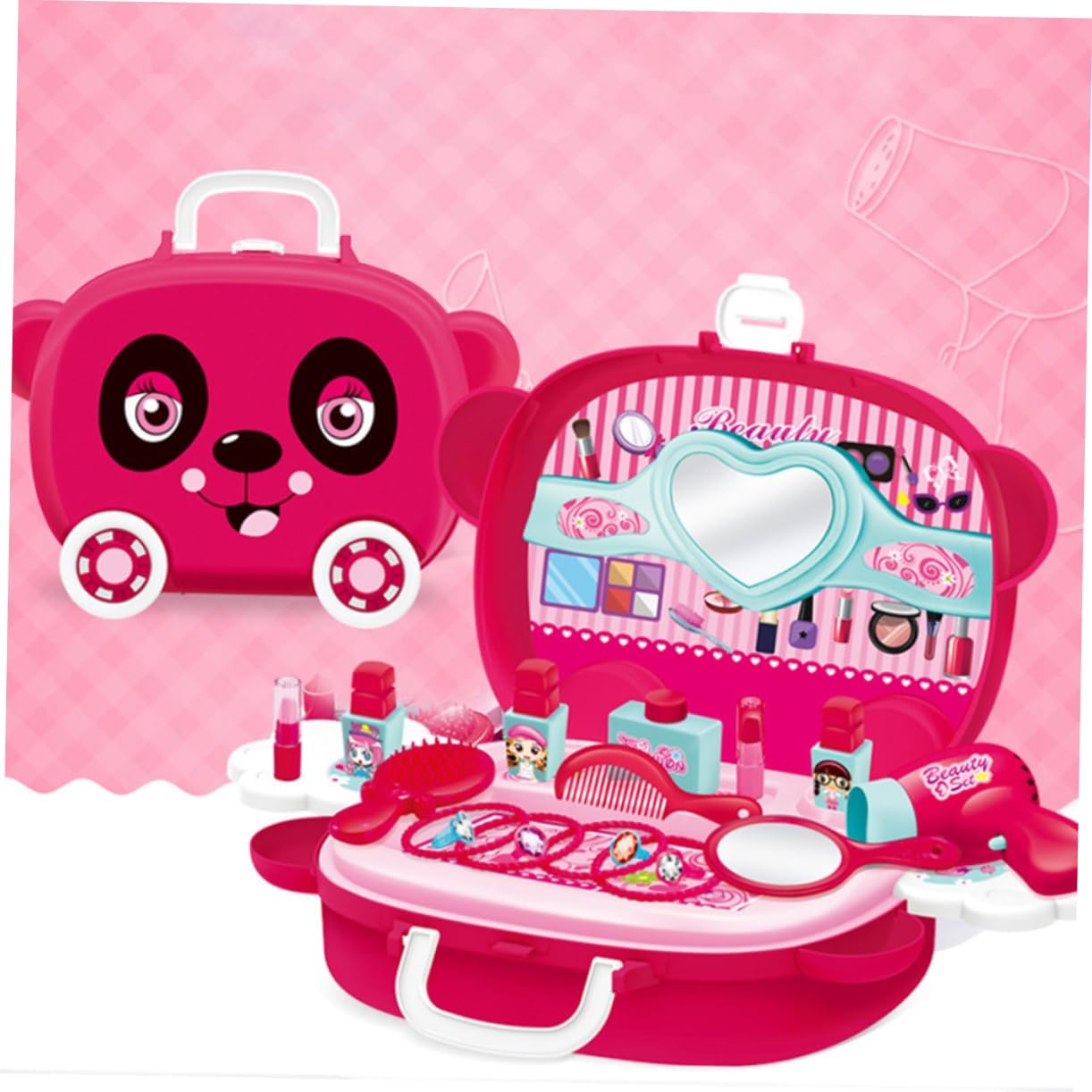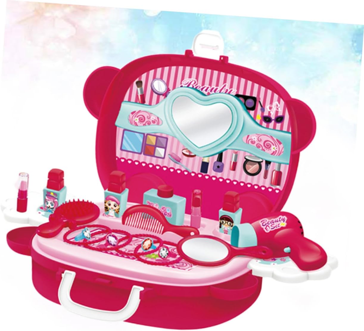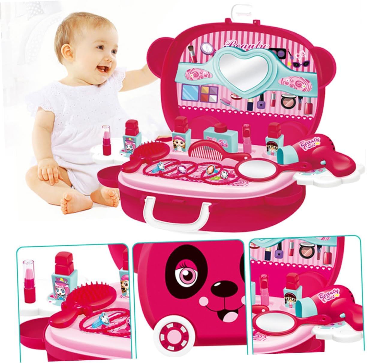 Valigia cosmetica di simulazione: realizzata in materiale, è e un uso duraturo, puoi usarla, giocattoli per bambini Giocattolo: puoi fare giochi di ruolo con i tuoi bambini questo prodotto può accompagnare efficacemente i bambini e aumentare l'interazione genitore-figlio Giocattoli: questo prodotto può essere regalato ai tuoi amici e alle famiglie saranno molto felici Giocattolo di simulazione del trucco: il design unico della valigia favorisce le buone abitudini di conservazione dei bambini e il contenuto della valigia non è facile da perdere, giocattoli per bambini Giocattolo cosmetico di simulazione: la lavorazione è liscia e gli angoli arrotondati non fanno male alle , promuovendo la capacità di funzionamento del tuo bambino, giocattoli da principessa