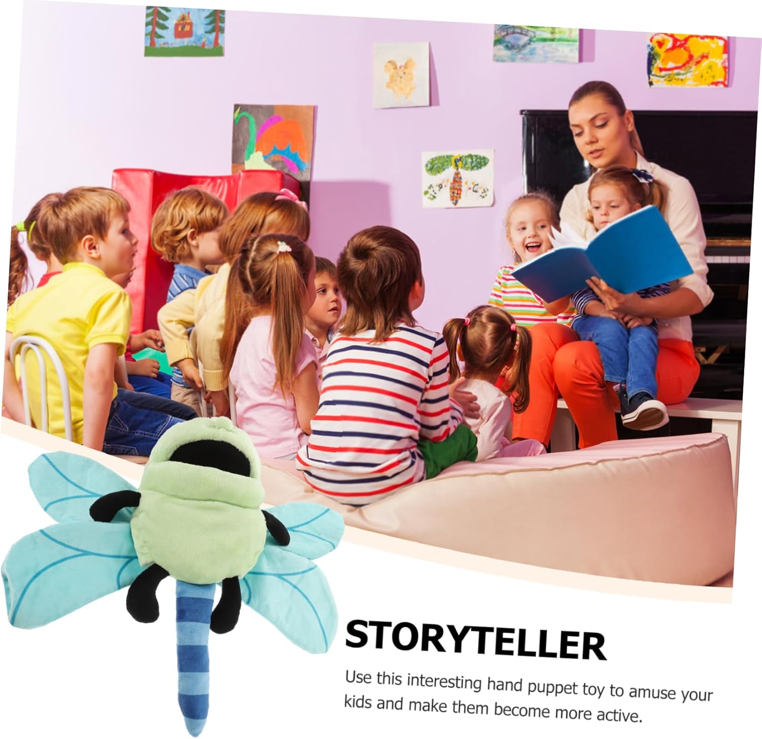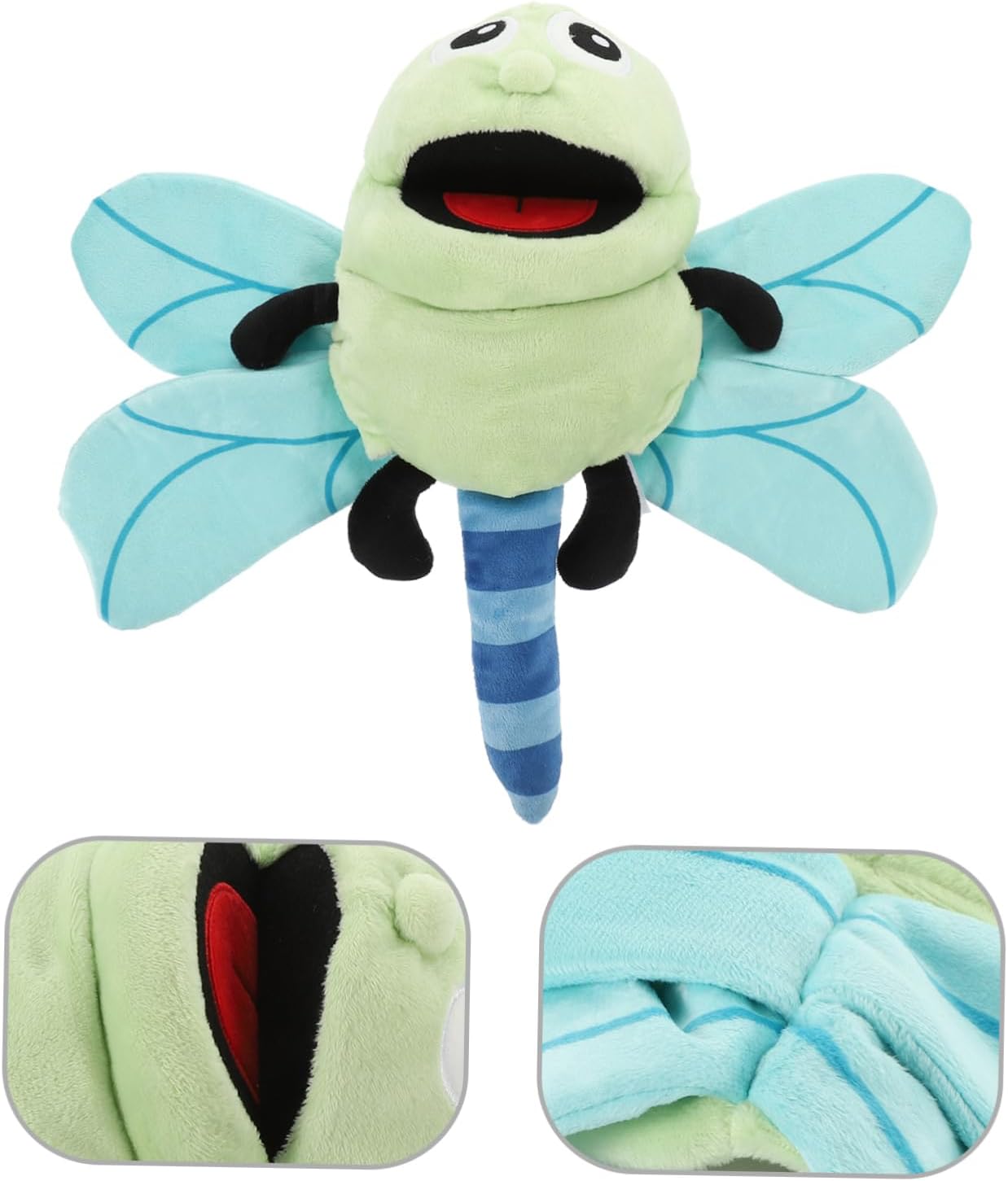 Giocattolo educativo precoce: ottimo per attività di immaginazione e gioco interattivo, migliora le capacità di comunicazione e le relazioni genitore-figlio. Marionette di peluche a forma di libellula: con la marionetta, i bambini e gli adulti possono raccontare una varietà di storie, il che è interessante e divertente. Giocattolo a mano: burattino a mano dei cartoni animati, puoi giocare quando lo indossi sulla mano, che è un supporto necessario per la narrazione. Burattino a mano con animale: l'adorabile burattino a mano con libellula è comodo da indossare sulla mano, ottimo per far giocare i bambini. Marionette da dito con animali: eccellenti per le capacità motorie, la coordinazione occhio-mano, le capacità di comunicazione e la costruzione della fiducia in se stessi.