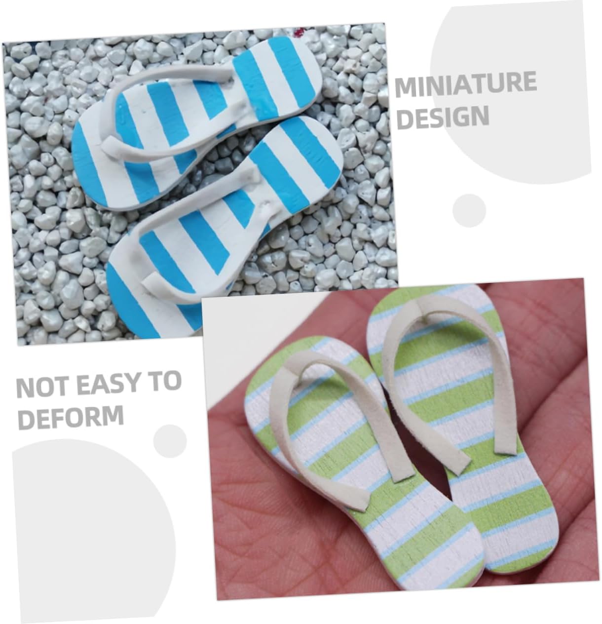 Dimensioni della bambola in miniatura: di utilizzo , una buona decorazione, in particolare decorazioni paesaggistiche per case in miniatura, decorazioni per mini case Oggetti di scena in miniatura: un modello realistico di pantofola in miniatura per l'arredamento della casa in miniatura, rende la tua casa in miniatura più delicata, in miniatura Spiaggia: splendidamente realizzata e realistica, con un alto grado di riproduzione realistica, quindi non puoi metterla giù, ornamenti per barche Topper per torta per festa in spiaggia: questo modello di pantofola è fantastico per i tuoi amici o familiari che amano l'artigianato in miniatura, la miniatura da spiaggia Statuetta giapponese-- con forma realistica di pantofola, sembra e adorabile, le dimensioni compatte sembrano estremamente realistiche, mini infradito colorate