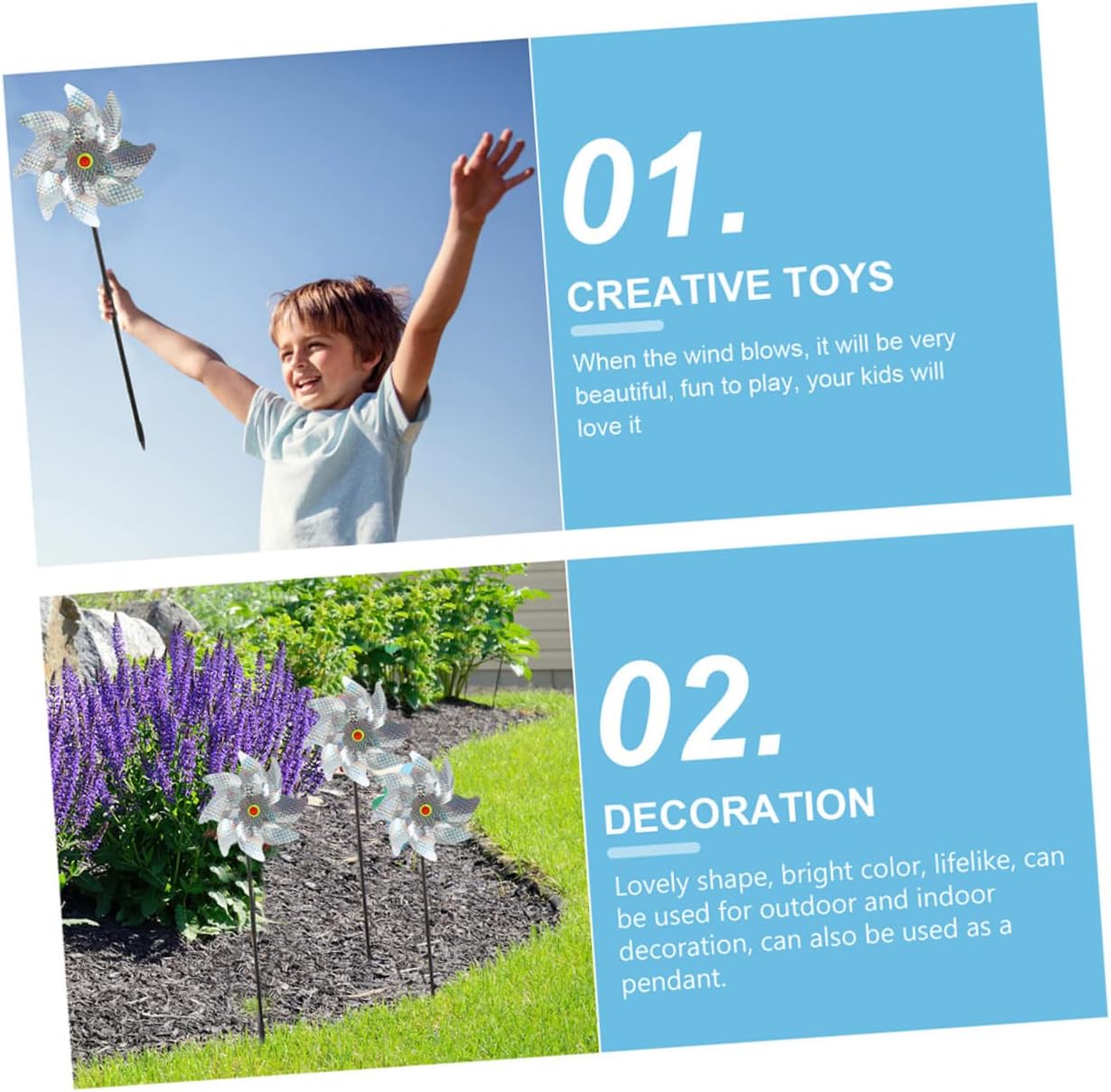 Decorazione a forma di girandola da giardino: realizzata con materiali di qualità, può essere conservata a lungo, girandola riflettente Strumento per uccelli: facile da installare, dopo il montaggio fai da te, basta inserire la nel foro di installazione della decorazione da giardino, decorazioni da giardino molto comode, girandola per uccelli Girandola riflettente da giardino: ha molti usi, può essere usata come decorazione del tuo giardino e può anche essere usata come mulino a vento per far giocare i tuoi , Girandola con : un ottimo modo per sbarazzarsi degli uccelli senza far loro del male, giocattoli a forma di mulino a vento Mulino a vento a forma di : oggetti di scena per decorazioni natalizie, produzione squisita e texture realistiche, atmosfera molto festosa, girandola con paillettes