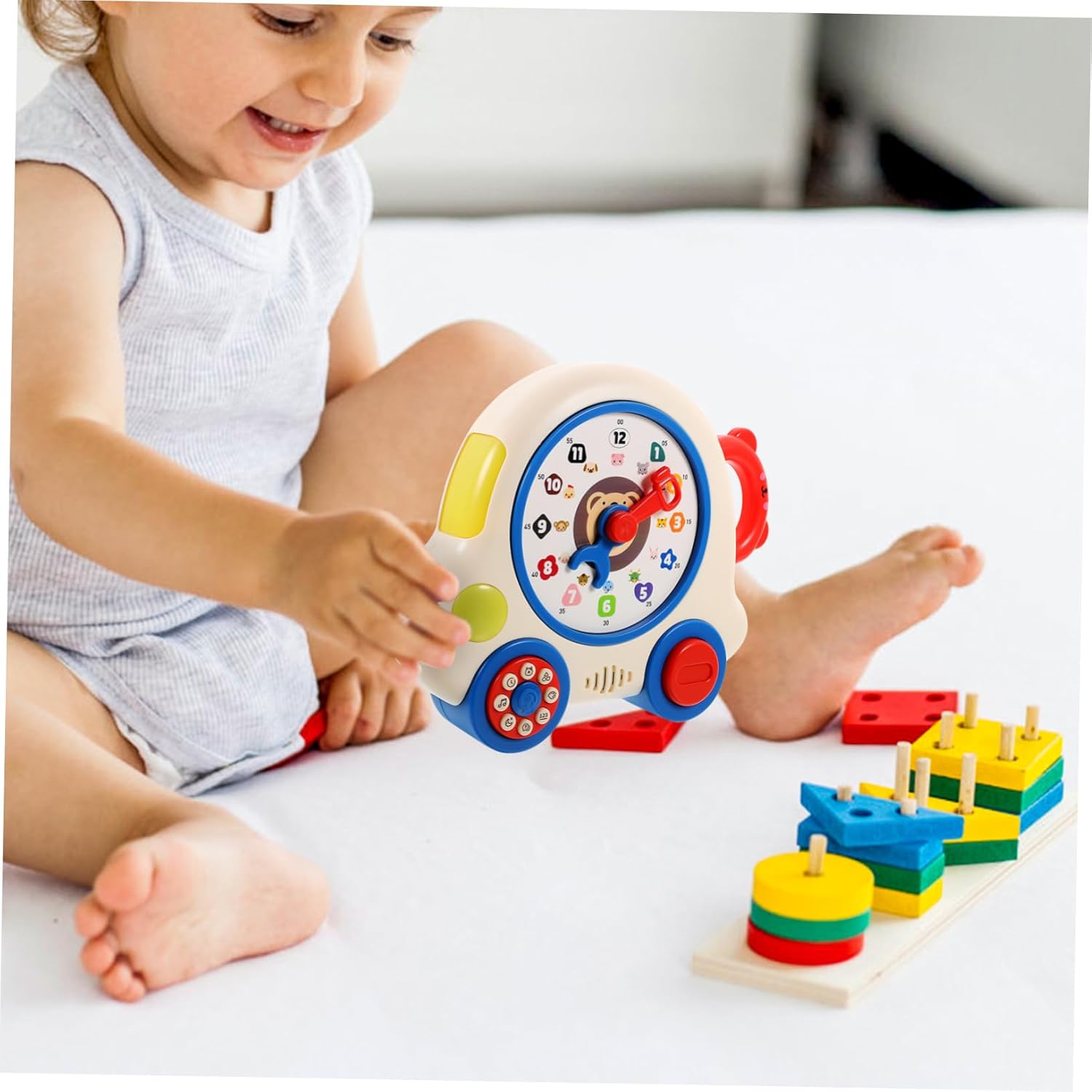 Modello di orologio per bambini - lo rende divertente e incoraggia la partecipazione al processo di apprendimento, orologio per bambini, giocattolo educativo con orologio - la modalità quiz di questo giocattolo educativo prevede attività di apprendimento interattive e fornisce sfide per migliorare le loro capacità cognitive. Giocattolo educativo per l'apprendimento dell'orologio: i genitori possono regolare il volume in base alle esigenze e alle preferenze del bambino. Orologio didattico per leggere l'ora: il materiale è sicuro e leggero, resistente all'usura e pratico per un uso a lungo termine per insegnare ai bambini Orologio per imparare l'ora: lucidatura liscia e attenta, bordi e angoli lisci, in modo che le mani dei bambini non si feriscano facilmente, orologio didattico per bambini piccoli