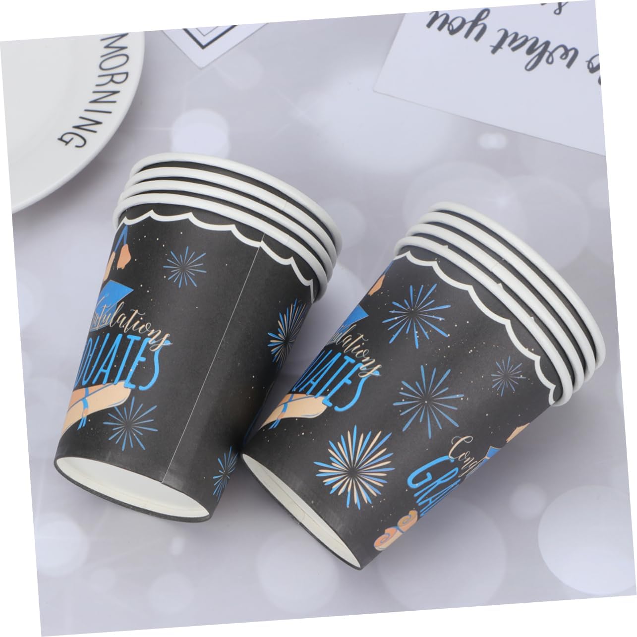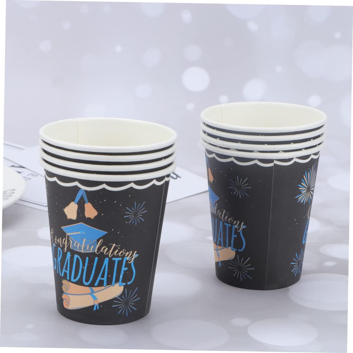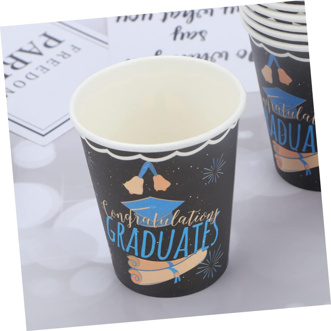 Forniture per feste in carta: festa a tema di laurea, ideale per servire la tua festa. Forniture per decorazioni per feste per bambini - set per feste alla moda: questo set di bicchieri di carta per la cena è realizzato per offrirti un modo affidabile ed ecologico per servire le persone. Posate per feste: bicchieri di carta per birra, succhi, bevande, acqua, latte, tè, caffè, cioccolata, bevande calde e fredde. Forniture per feste di laurea: set di bicchieri di carta usa e getta ed ecologici, sicuri e addensati. Articoli per feste ecologici: gli utensili di carta usa e getta riducono i tempi di pulizia in modo da poter trascorrere più tempo con amici e familiari, il design semplice con lavorazione delicata attira i bambini.