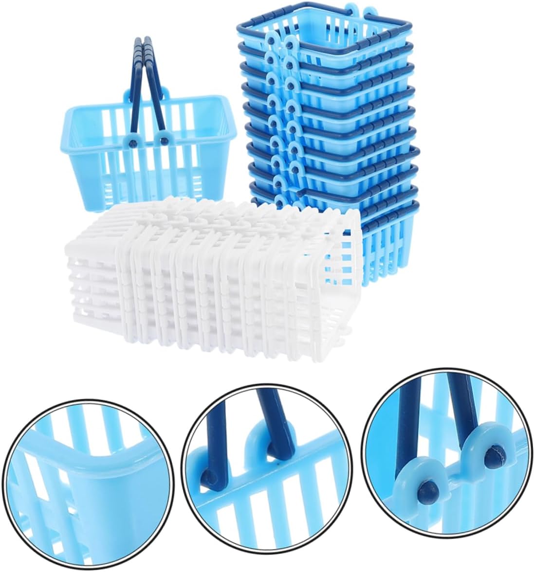Mini cestini per carrello della spesa: il mini cestino è perfetto per far giocare il tuo , per giochi di ruolo e simulazioni di scenari, buona decorazione e piccolo organizzatore per la tua casa o la scrivania dell'ufficio, piccoli giocattoli per Mini cestino della spesa: le giunture sono solide e arrotondate e non ti faranno male alle mani, perfetto per decorare la tua cucina, l'ufficio o qualsiasi stanza della tua casa, piccolo cestino della spesa Mini: sebbene di piccole dimensioni, questo mini di carrello della spesa può essere utilizzato per riporre una varietà di articoli come matite, cosmetici, penne, ecc., cestini per la spesa con giocattoli Cestino della spesa in miniatura per casa delle bambole: questo è un mini cestino che riproduce esattamente l'aspetto di un normale cestino della spesa ed è molto carino, piccoli cestini Modelli di cestini per la spesa: il nostro di mini cestino per la spesa è multifunzionale e può essere utilizzato come cestino portaoggetti e come decorazione da scrivania, cestino per la spesa per