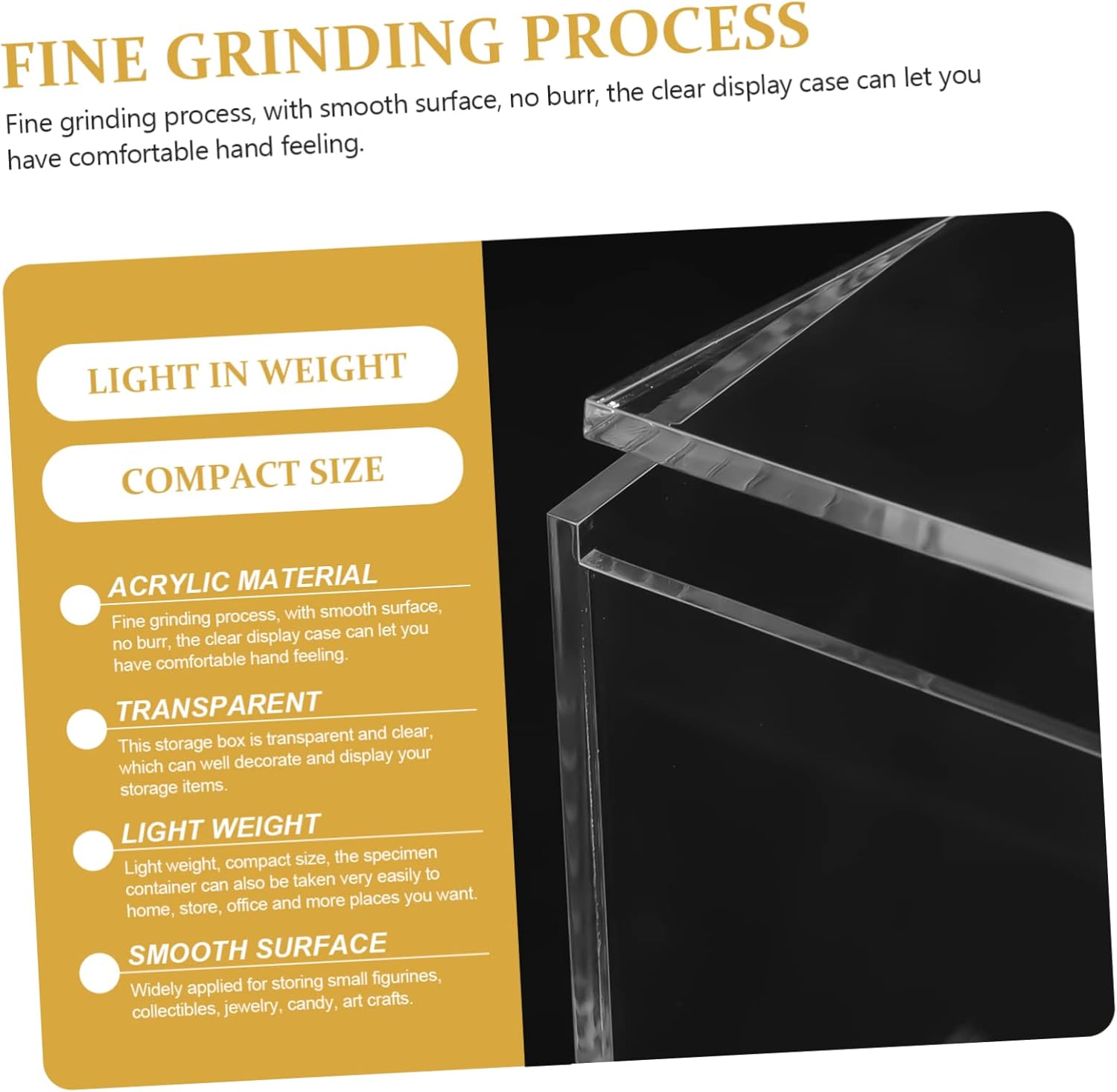 In acrilico: con lavorazione dettagliata e buona consistenza, trasparente è liscia e confortevole al , custodia per collezione In acrilico: design trasparente è ed elegante, ti permette vedere facilmente gli oggetti all'interno, ha un buon effetto decorativo, contenitori stoccaggio impilabili Scatole portaoggetti a : realizzate in materiali acrilici e buona fattura, scatola espositiva portatile è sicura e può essere utilizzata a lungo, da collezione Organizzatore per riporre borse: scatola espositiva per statuette è pratica per evitare i tuoi oggetti si , ottenendo anche un eccellente effetto protettivo, custodia espositiva in plastica trasparente Scaffale espositivo per oggetti da collezione: ampiamente utilizzato per riporre piccole statuette, oggetti da collezione, gioielli, caramelle, oggetti d'artigianato, trucco, prodotti per unghie e altro ancora, la scatola espositiva in acrilico soddisfa tue esigenze, per statue