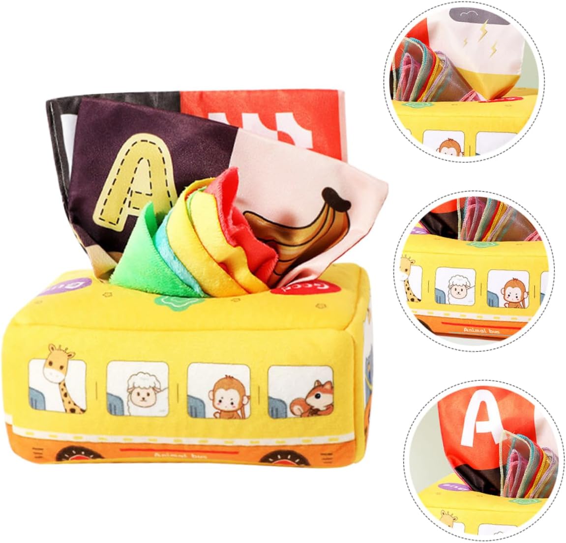 Giocattolo per fazzoletti per neonati: scatola per fazzoletti - per promuovere la capacità di riconoscimento dei colori dei bambini con colori vivaci e fornire loro un'esperienza di utilizzo Sensoriale per i più piccoli: la nostra scatola per fazzoletti sensoriali ha molti stimoli per i loro fazzoletti, giocattolo per bambini Giocattolo per neonati per estrarre i fazzoletti: scatola per fazzoletti - è, liscia e dà sollievo ai bambini. È un giocattolo sensoriale per l'estrazione dei fazzoletti: questa scatola di fazzoletti sensoriali intratterrà i bambini per ore con i suoi colori vivaci, i suoni scoppiettanti e il divertimento, Giocattolo Montessori in tessuto sensoriale indistruttibile: non devi preoccuparti di farti male durante l'uso. è un giocattolo per bambini in tessuto