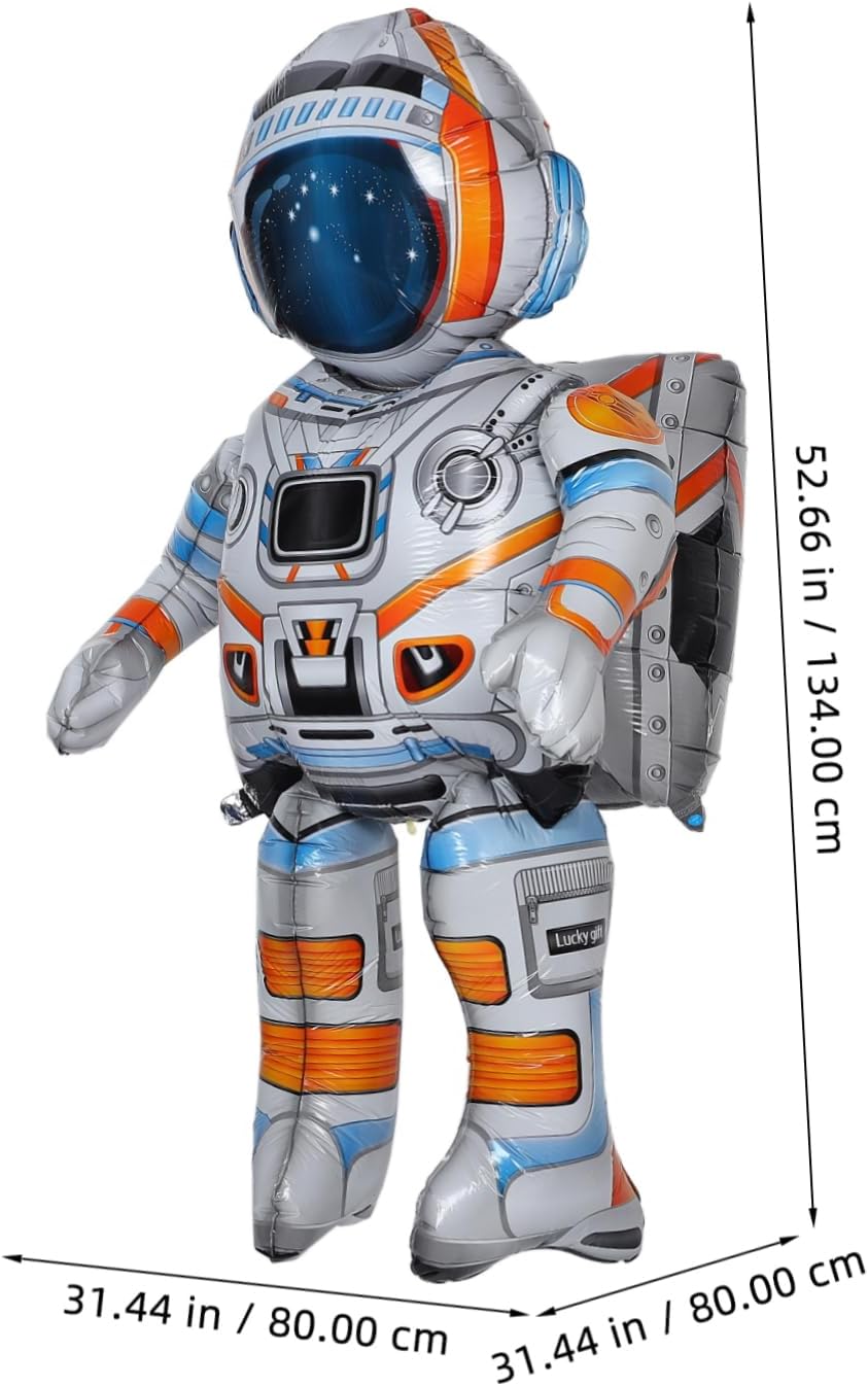 Materiale robusto: realizzato con materiali, il palloncino è progettato per durare durante tutto l'evento senza sgonfiarsi o scoppiare, bomboniere, decorazioni per astronauti Multiuso: ideale per compleanni, docce e feste a tema, il palloncino è versatile e adatto a varie celebrazioni, decorazioni di compleanno spaziali, decorazioni con palloncini astronauti Arredamento elegante: il palloncino a forma di astronauta è molto elegante e chic, aggiunge divertimento e un'atmosfera festosa alla festa, compleanno di palloncini, decorazioni di compleanno dell'astronauta Semplice da usare: basta gonfiare il palloncino, facilitando l'installazione delle decorazioni della festa in modo rapido ed efficiente, palloncini decorativi per il compleanno, forniture per feste di compleanno Tema spaziale unico: caratterizzato da un design astronauta, il palloncino è bello per aggiungere un tema spaziale unico alla tua festa di compleanno o evento, palloncini astronauti, palloncino gonfiabile in piedi