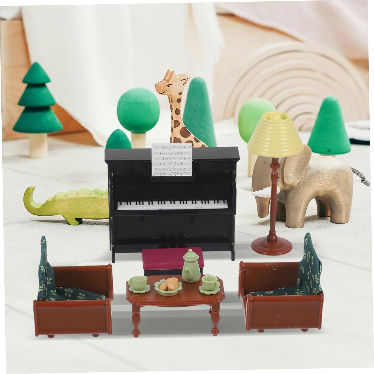 Mini decorazioni per la casa: questo design è incredibilmente realistico, con dettagli che lo fanno sembrare proprio come una vera scena in miniatura del salotto di un divano per pianoforte, layout della scena di una casa delle bambole Forniture per case delle bambole: il realistico della serie di mobili per case delle bambole crea un'atmosfera realistica che sicuramente impressionerà, scena della casa delle bambole Arredamento della casa delle bambole: il design degli arredi traduce in stile classico ma alla moda, tradizionale e alla moda, pianoforte Ornamento in miniatura: con il suo design e i buoni materiali, questo set di pianoforte in miniatura delizierà sicuramente chiunque lo riceva, adornando i mobili in miniatura Mini ornamento per la casa: questo prodotto può essere utilizzato come accessorio versatile nel tuo soggiorno o come supporto per il gioco, ornamento paesaggistico in miniatura